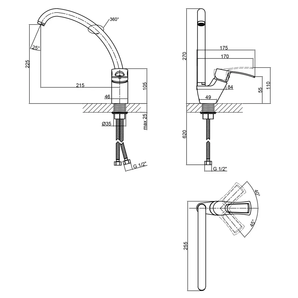 Змішувач, Гнучкий підвід, Кріпильні деталі