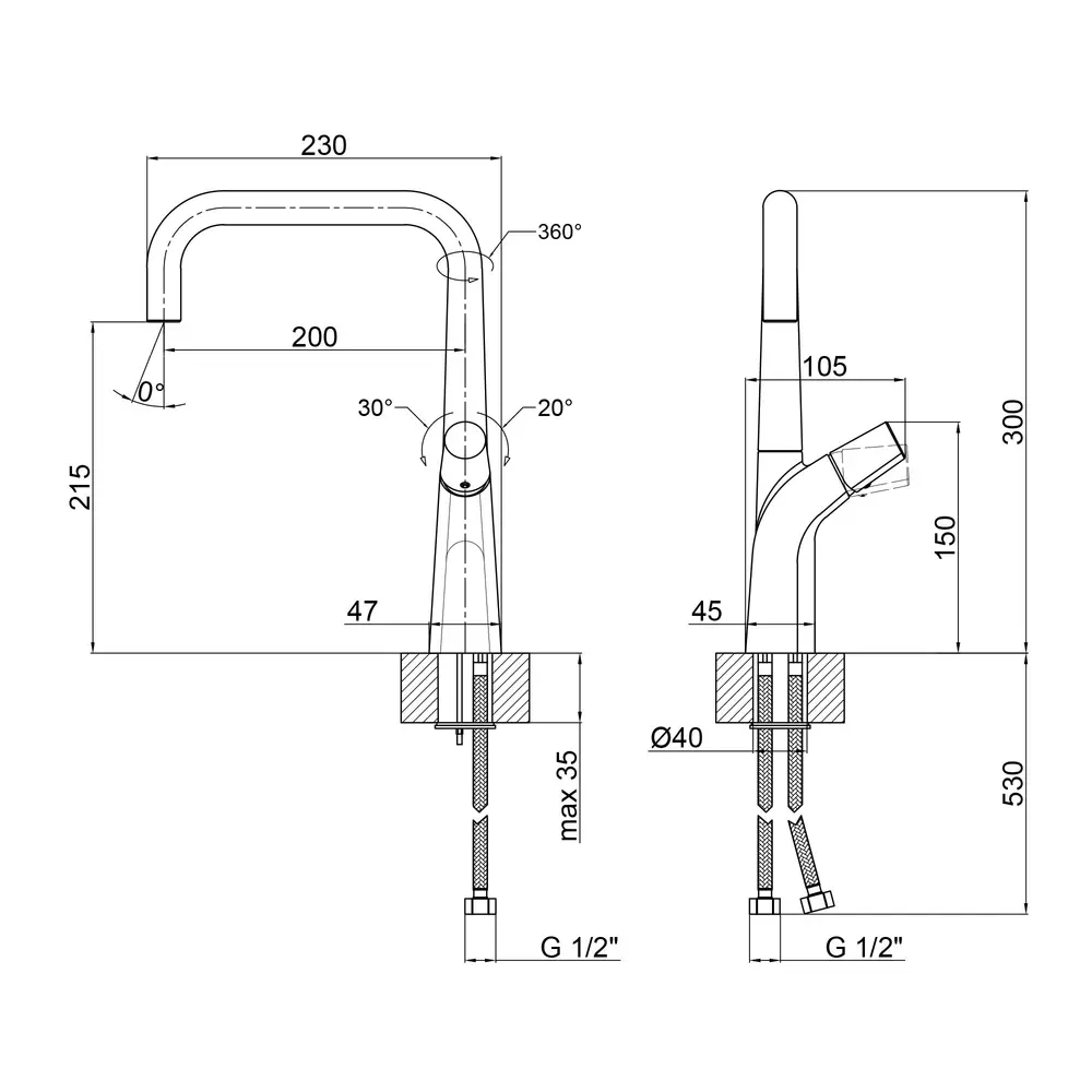 Змішувач, Гнучкий підвід, Кріпильні деталі