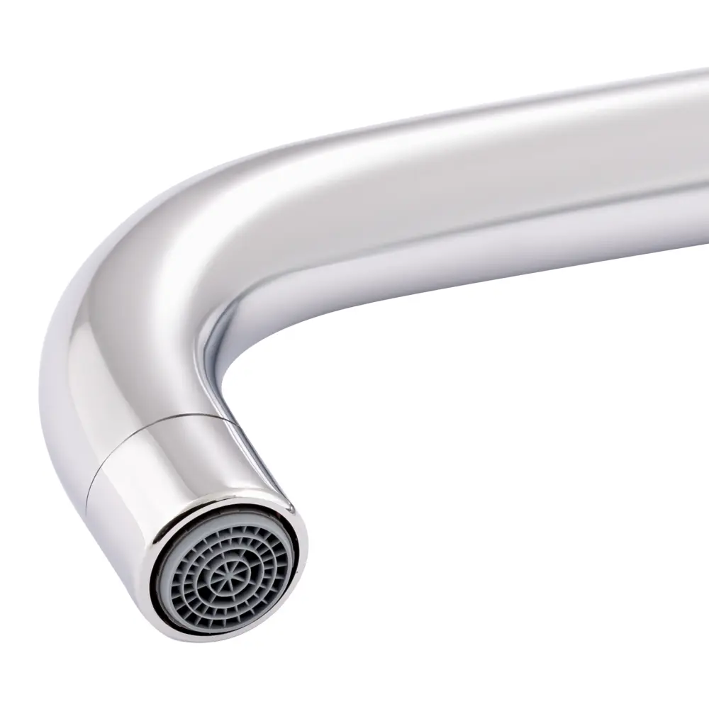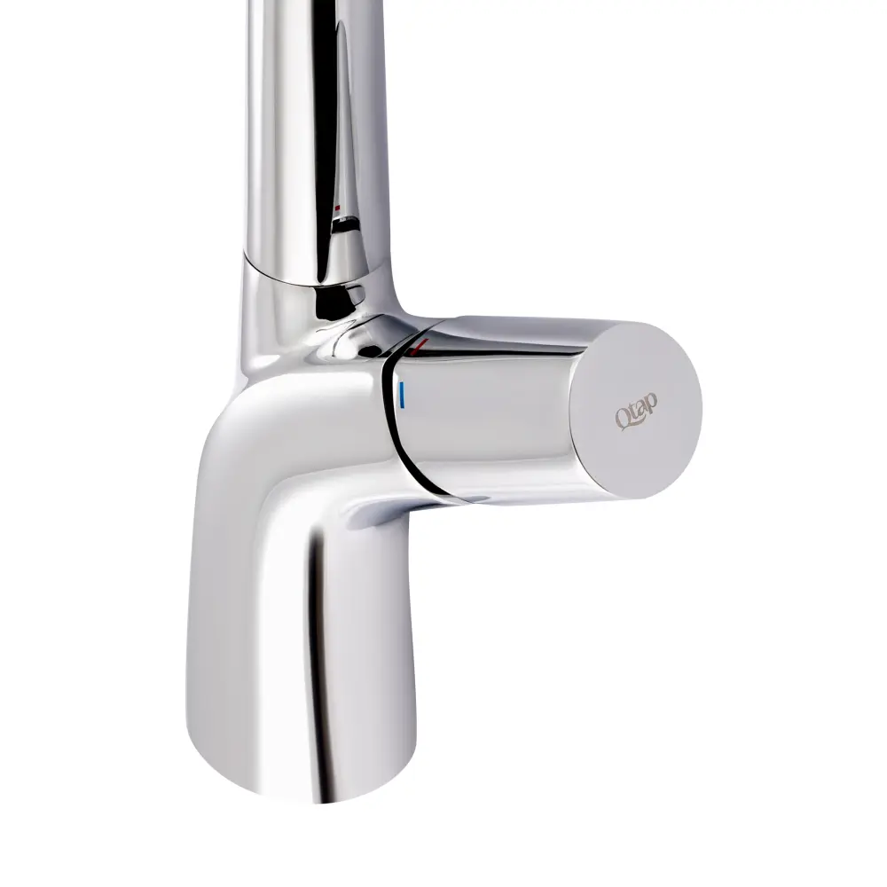 Змішувач для кухні Qtap Kuchyne 90102FC виготовлено з високоякісної харчової латуні, що стійка до впливу корозії, ударів і появи тріщин. Глянцеве хромоване покриття не тільки підвищує довговічність змішувача, а й надає йому привабливості. Змішувач має оригінальний важіль, за допомогою якого можна відрегулювати температуру і напір води. Змішувач виконано в сучасному стилі, він ідеально доповнить інтер‘єр кухні.