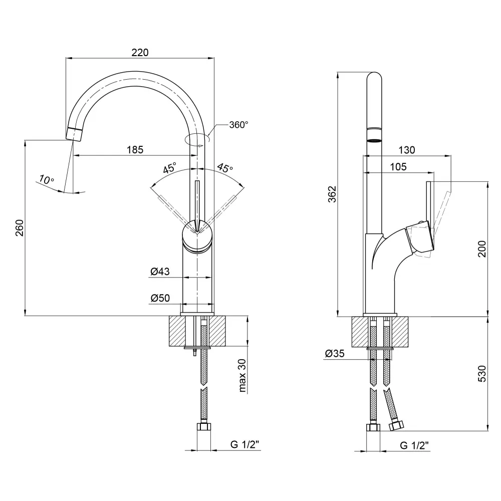Змішувач, Гнучкий підвід, Кріпильні деталі