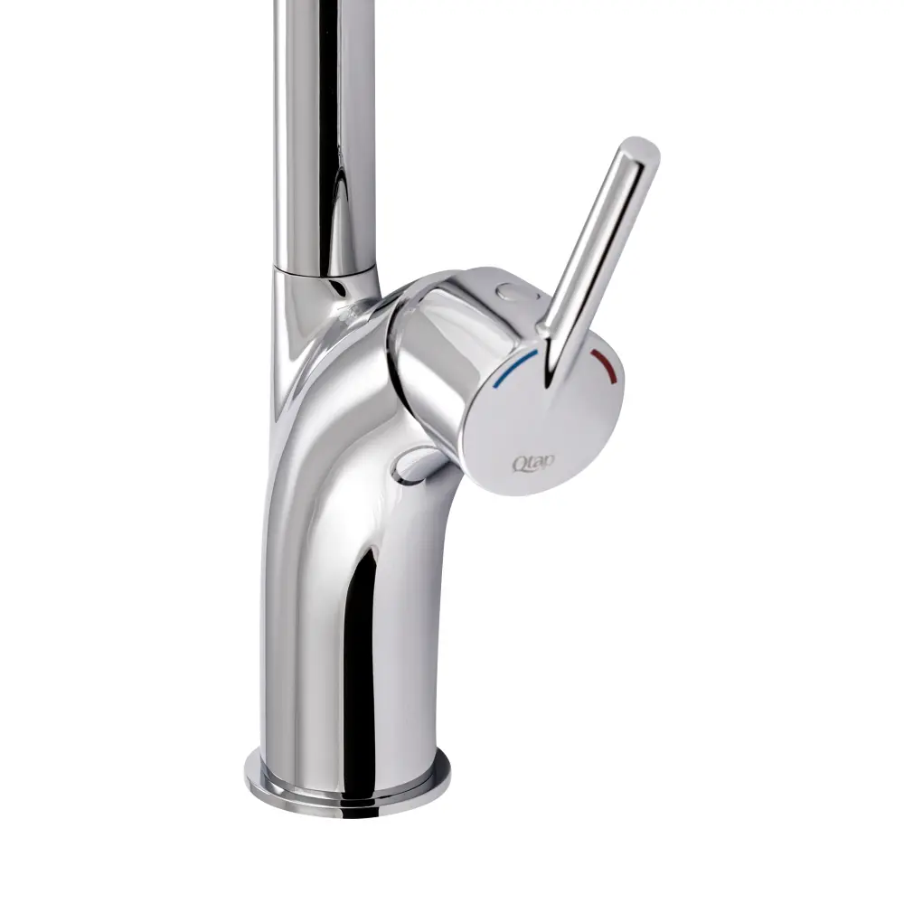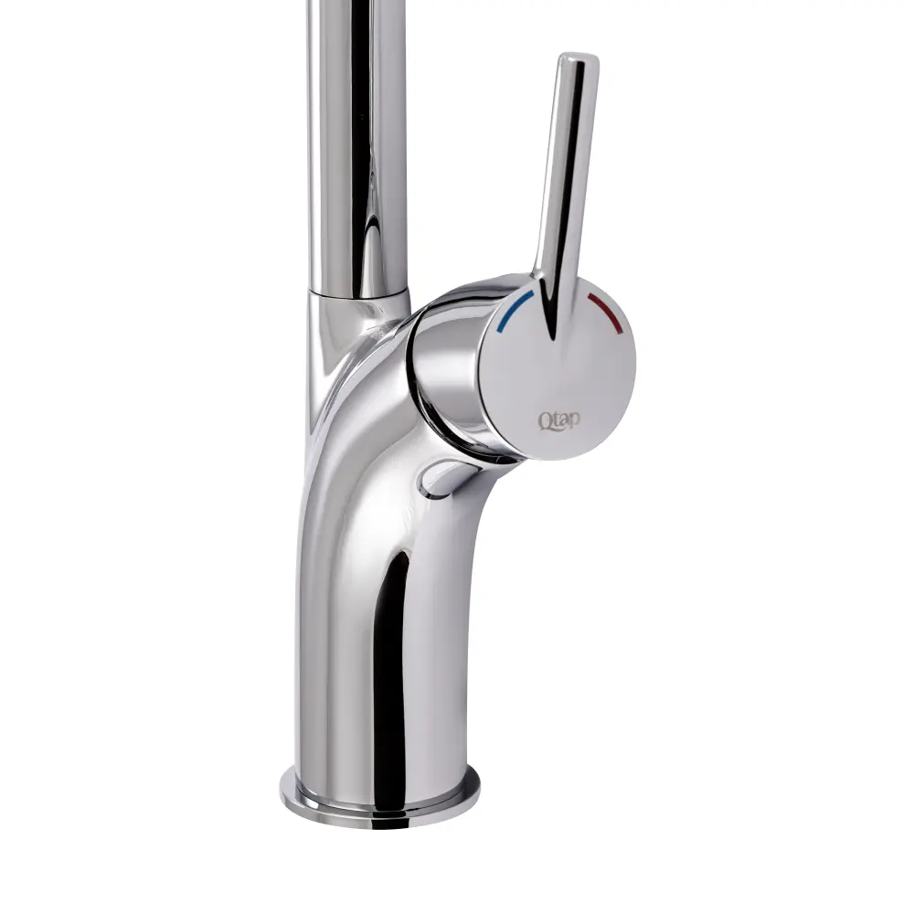 Змішувач для кухні Qtap Kuchyne 90102UC виготовлено з високоякісної харчової латуні, що стійка до впливу корозії, ударів і появи тріщин. Глянцеве хромоване покриття не тільки підвищує довговічність змішувача, а й надає йому привабливості. Змішувач має одноважільне керування, за допомогою якого можна відрегулювати температуру і напір води. Змішувач виконано в сучасному стилі, він ідеально доповнить інтер‘єр кухні.