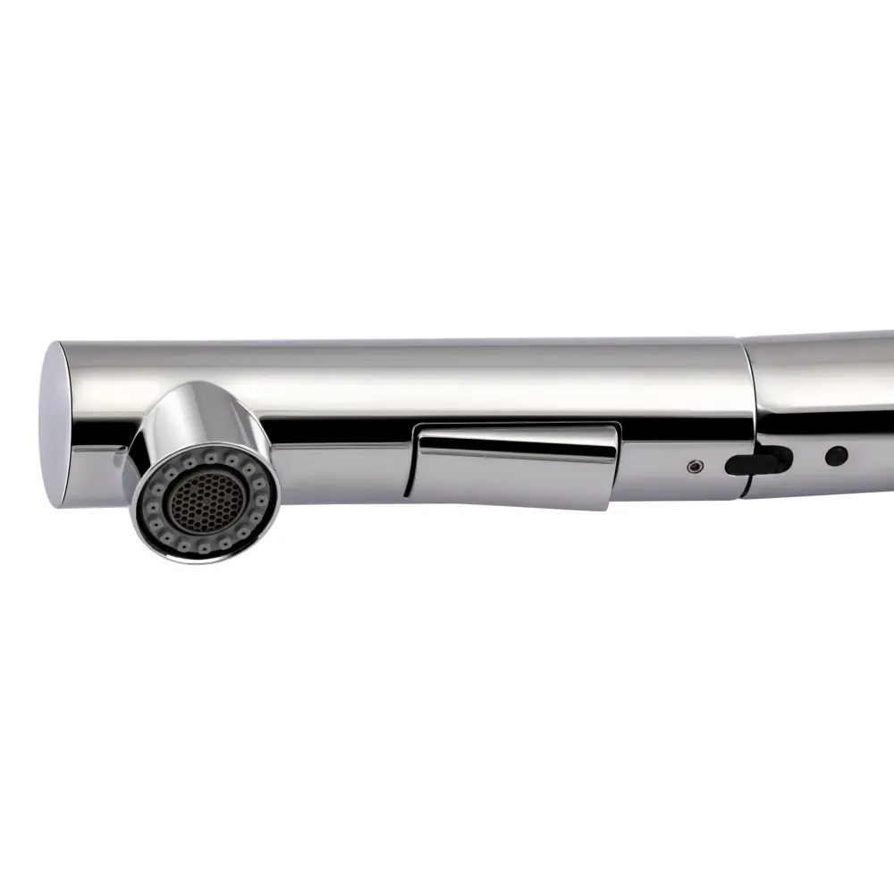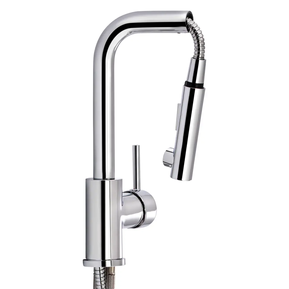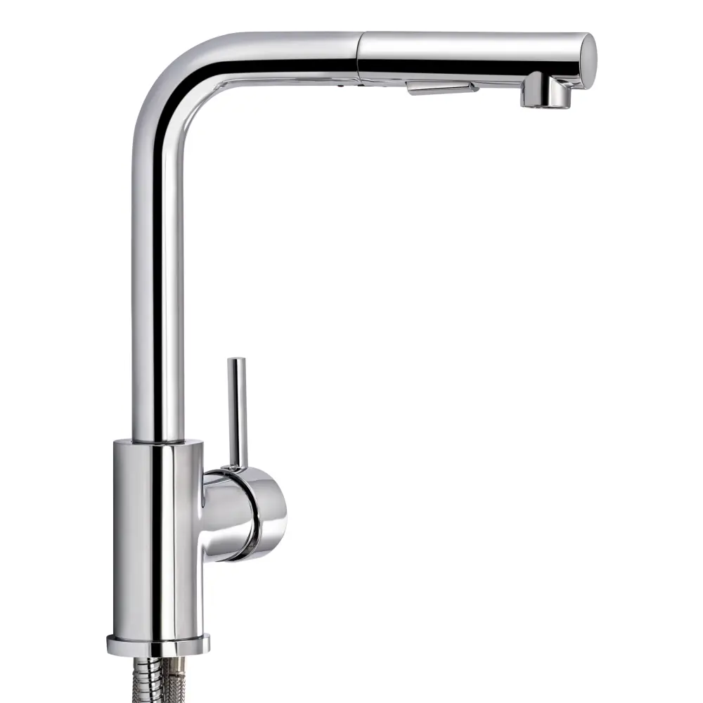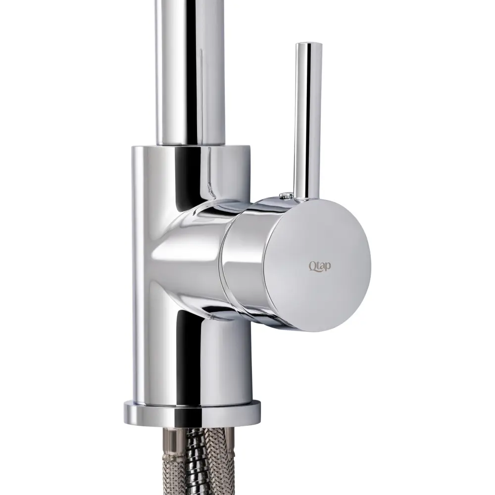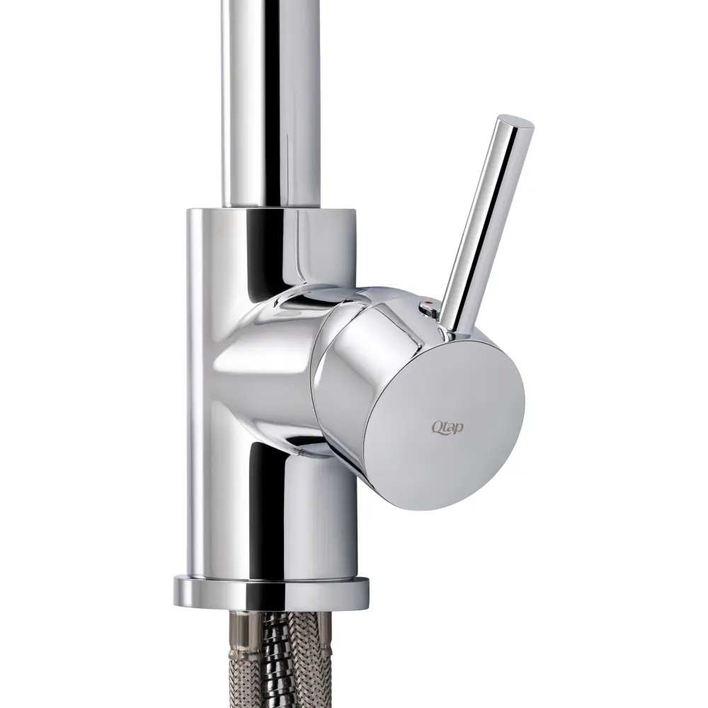 Змішувач для кухні з висувним виливом Qtap Kuchyne 91107FC виготовлено з високоякісної харчової латуні, що стійка до впливу корозії, ударів і появи тріщин. Глянцеве хромоване покриття не тільки підвищує довговічність змішувача, а й надає йому привабливості. Змішувач має одноважільне керування, за допомогою якого можна відрегулювати температуру і напір води. Змішувач виконано в сучасному стилі, він ідеально доповнить інтер‘єр кухні.