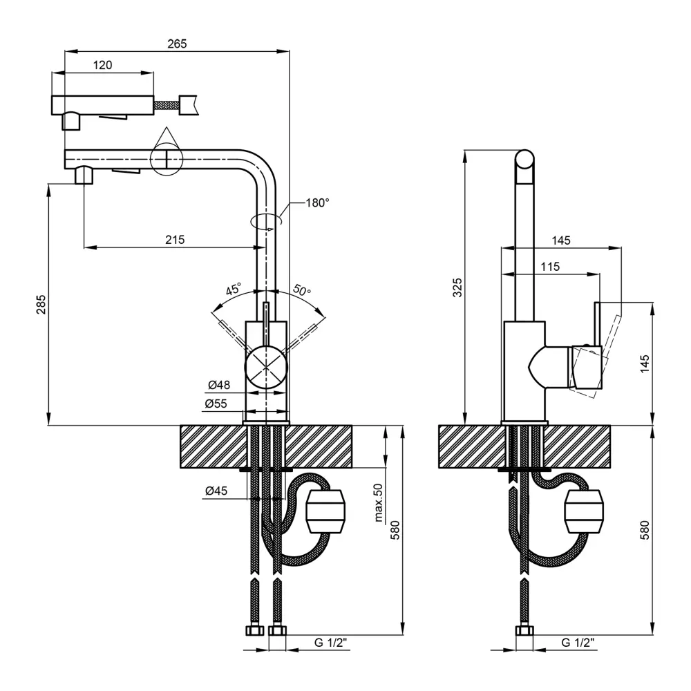Змішувач, Шланг для висувної лійки, Гнучкий підвід, Кріпильні деталі, Якір