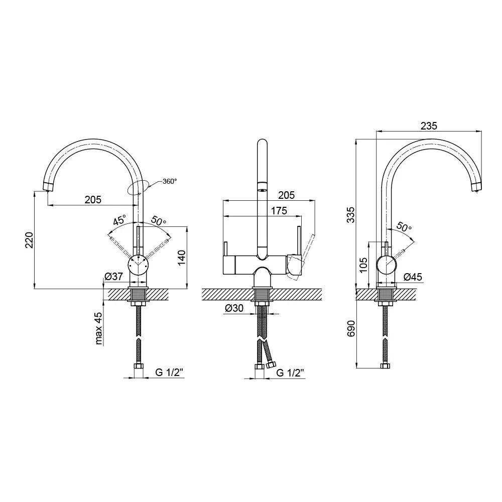 Змішувач, Гнучкий підвід, Кріпильні деталі