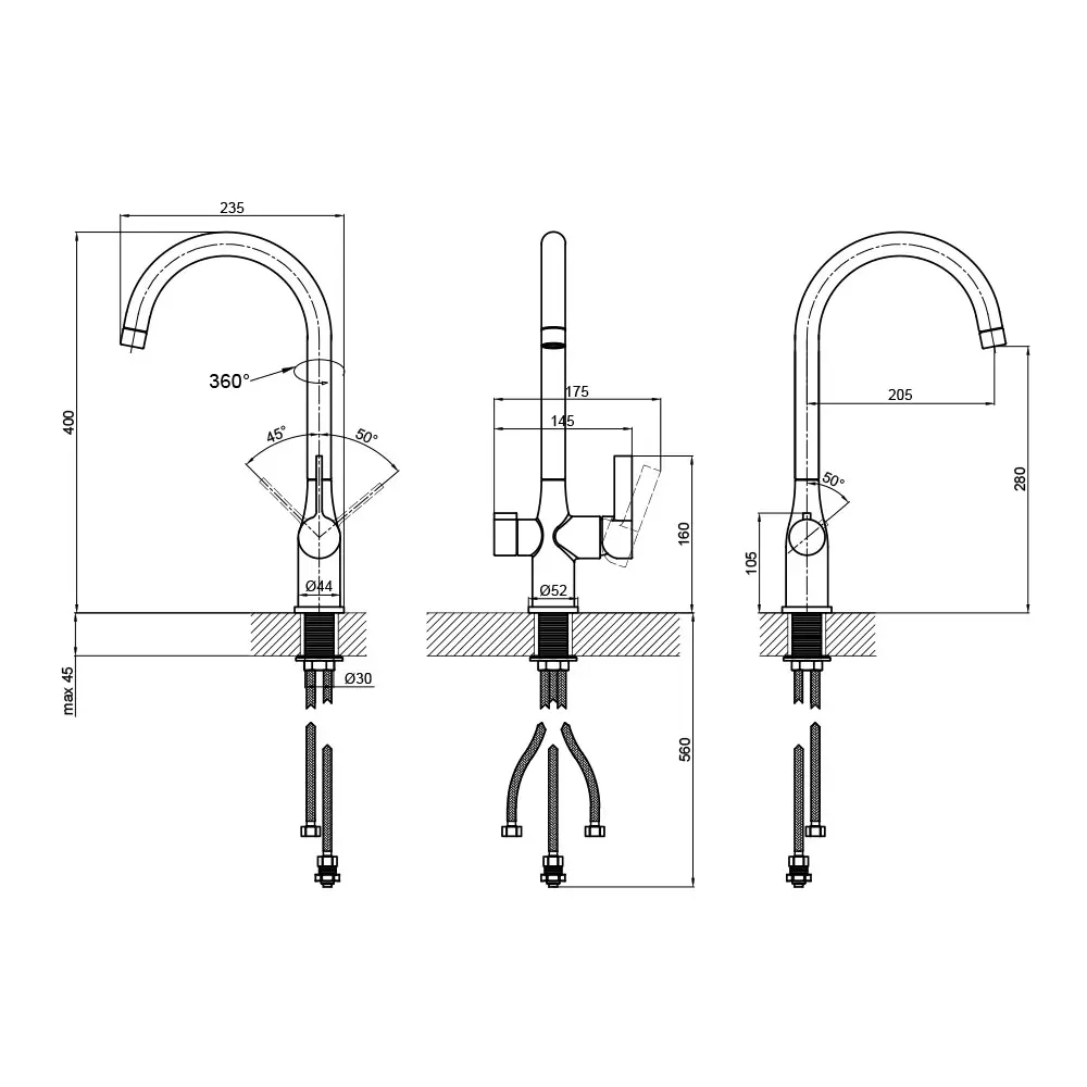 Змішувач, Гнучкий підвід, Кріпильні деталі