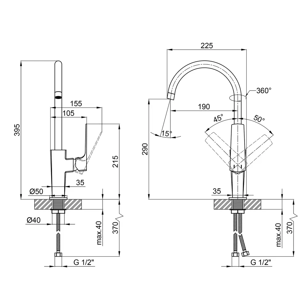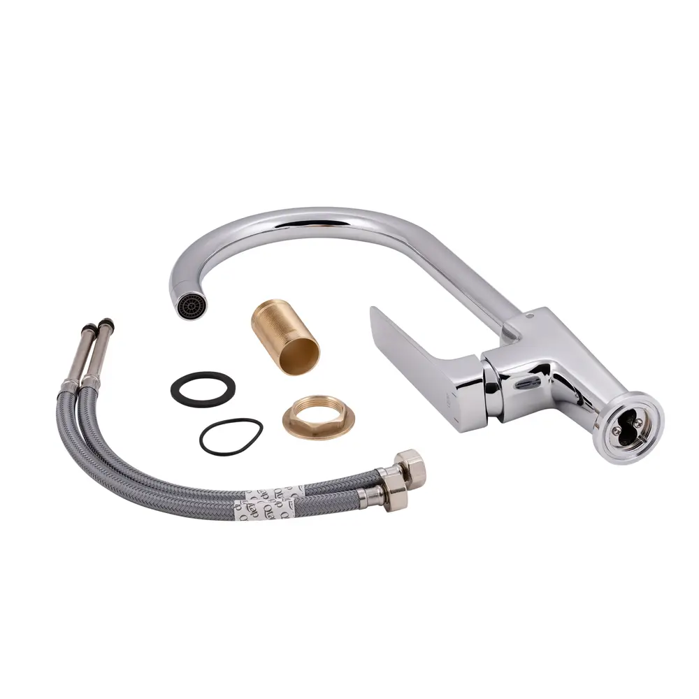 Змішувач для кухні Qtap Letel 9053104UC виготовлено з високоякісної харчової латуні, що стійка до впливу корозії, ударів і появи тріщин. Глянцеве хромоване покриття не тільки підвищує довговічність змішувача, а й надає йому привабливості. Змішувач має одноважільне керування, за допомогою якого можна відрегулювати температуру і напір води. Змішувач виконано в сучасному стилі, він ідеально доповнить інтер‘єр кухні.