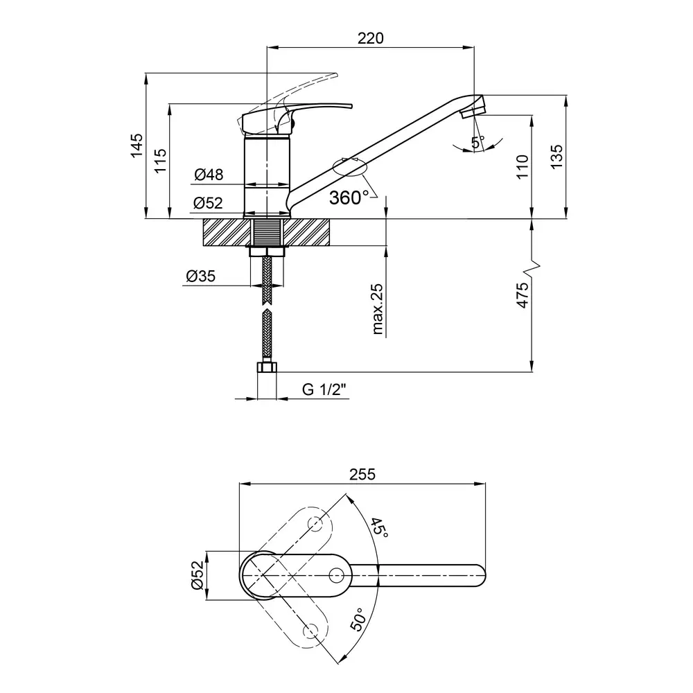 Змішувач для кухні Qtap Mars СRM 003 виготовлений з високоякісної харчової латуні, яка стійка до впливу корозії, ударів і появи тріщин. Глянсове хромоване покриття не тільки підвищує довговічність змішувача, а й надає йому привабливості. Змішувач має одноважільне управління, за допомогою якого можна відрегулювати температуру і напір холодної та гарячої води. Виконаний в сучасному дизайні, який ідеально доповнить інтер‘єр кухні.