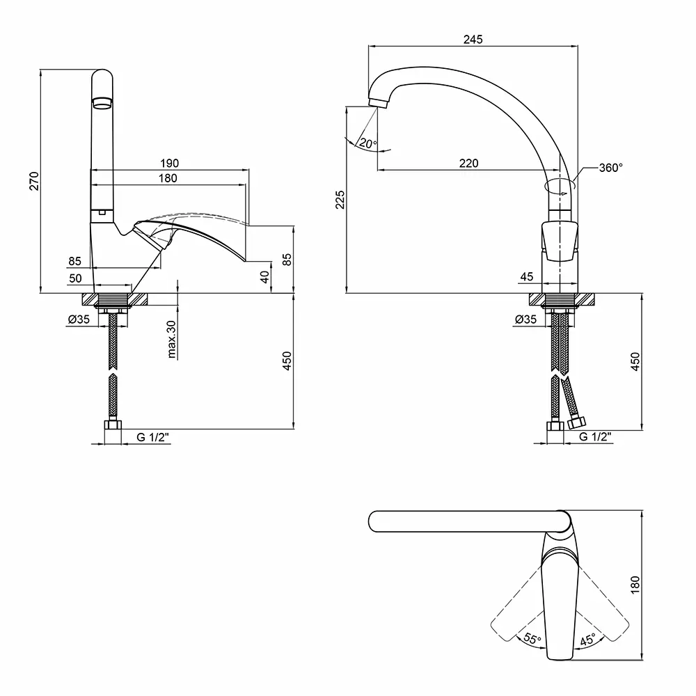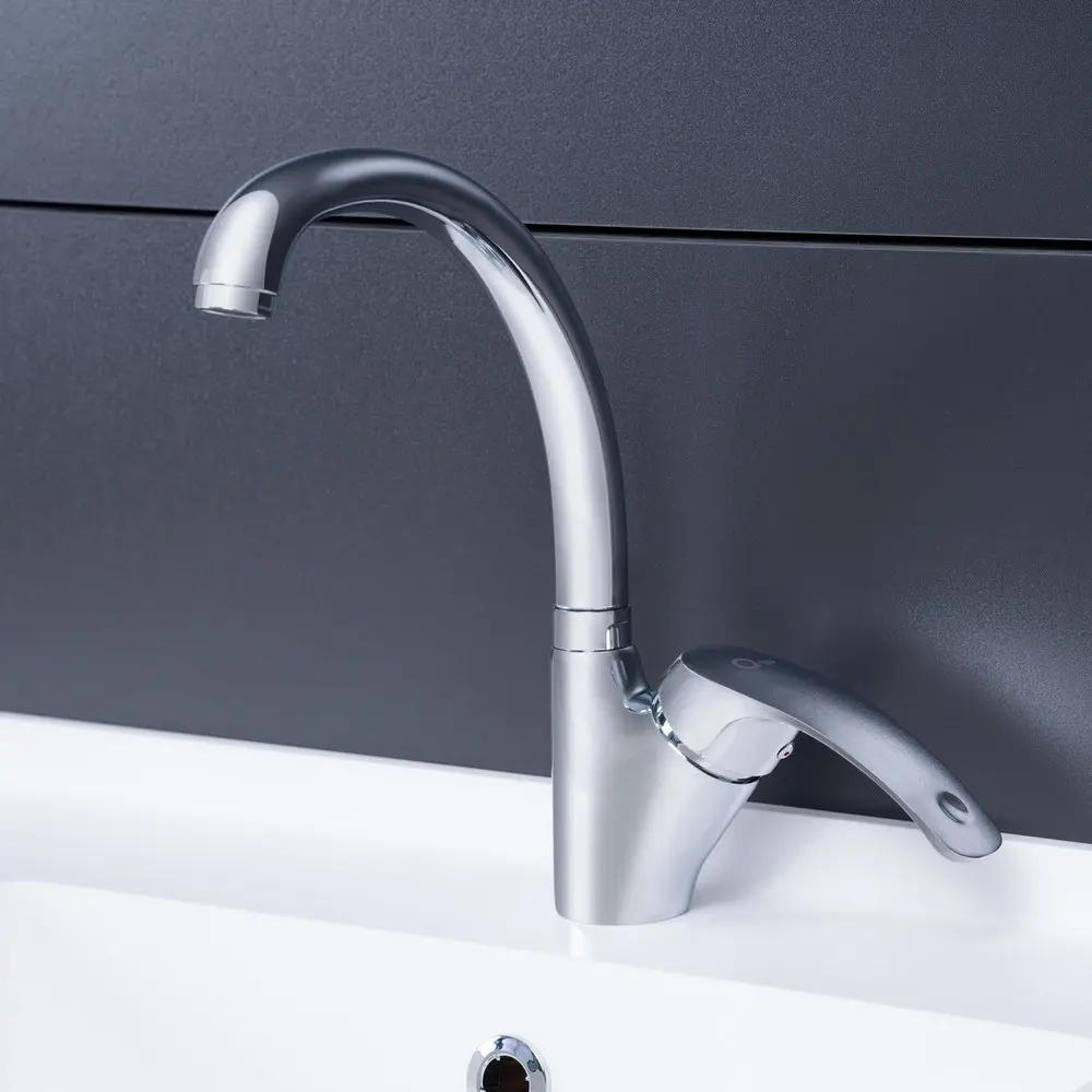 Змішувач для кухні Qtap Mars СRM 007F виготовлений з високоякісної харчової латуні, яка стійка до впливу корозії, ударів і появи тріщин. Глянсове хромоване покриття не тільки підвищує довговічність змішувача, а й надає йому привабливості. Змішувач має одноважільне управління, за допомогою якого можна відрегулювати температуру і напір холодної та гарячої води. Виконаний в сучасному дизайні, який ідеально доповнить інтер‘єр кухні.