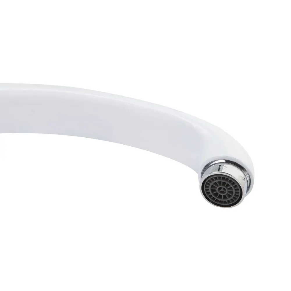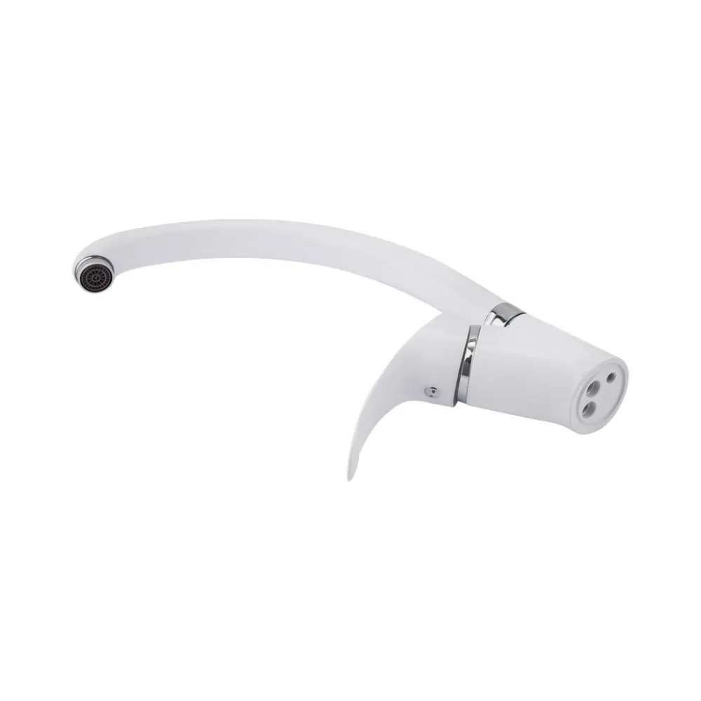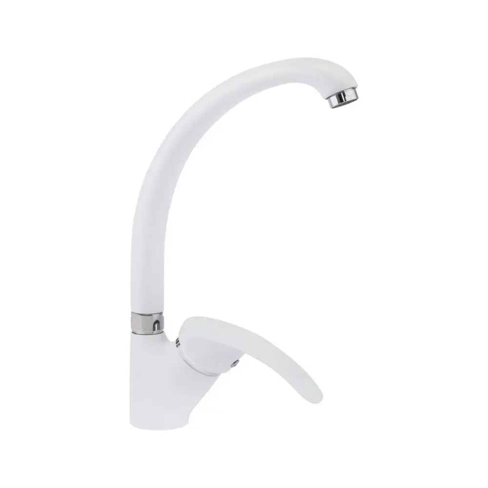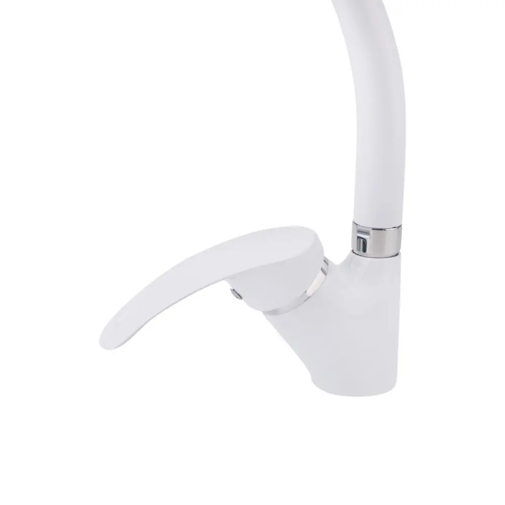 Змішувач для кухні Qtap Mars WHI 007 виготовлений з високоякісної харчової латуні, яка стійка до впливу корозії, ударів і появи тріщин. Матова поверхня білого кольору надає змішувачу оригінальності. Змішувач має одноважільне управління, за допомогою якого можна відрегулювати температуру і напір холодної та гарячої води. Виконаний в сучасному стилі, з поворотним виливом, стане справжньою родзинкою в інтер‘єрі кухні.
