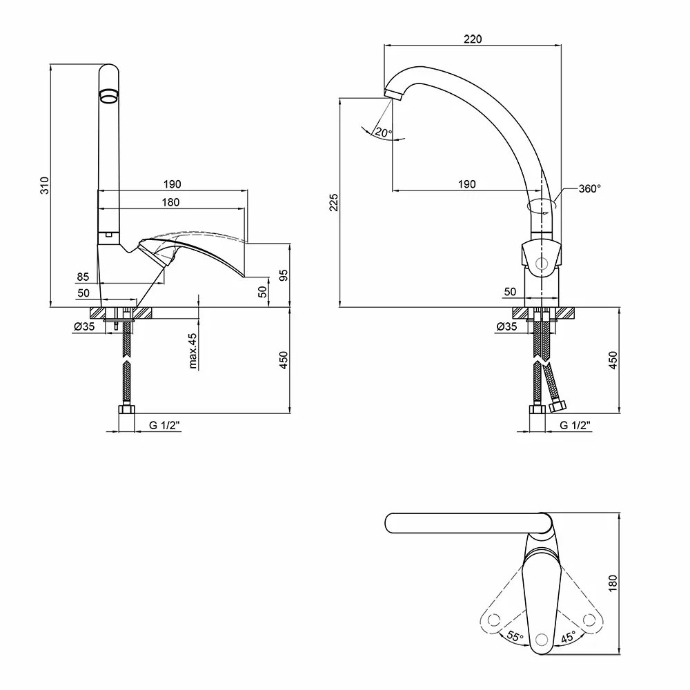 Змішувач, Гнучкий підвід, Кріпильні деталі