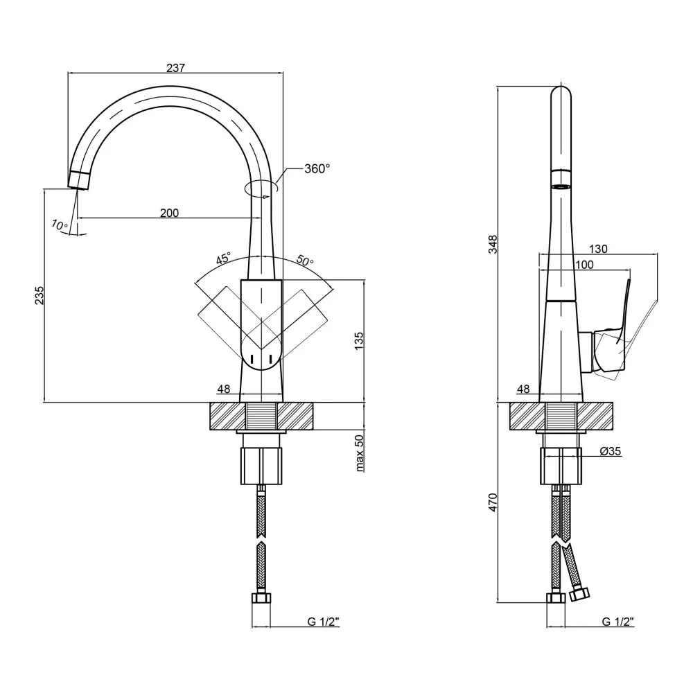 Змішувач, Гнучкий підвід, Кріпильні деталі