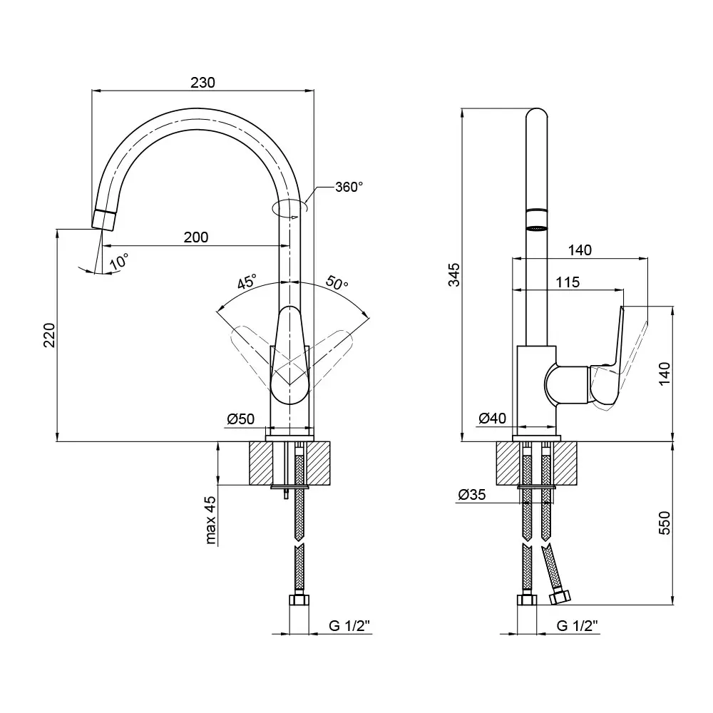 Змішувач, Гнучкий підвід, Кріпильні деталі