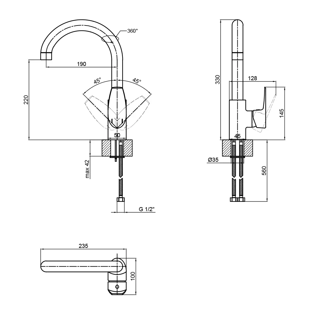 Змішувач, Гнучкий підвід, Кріпильні деталі
