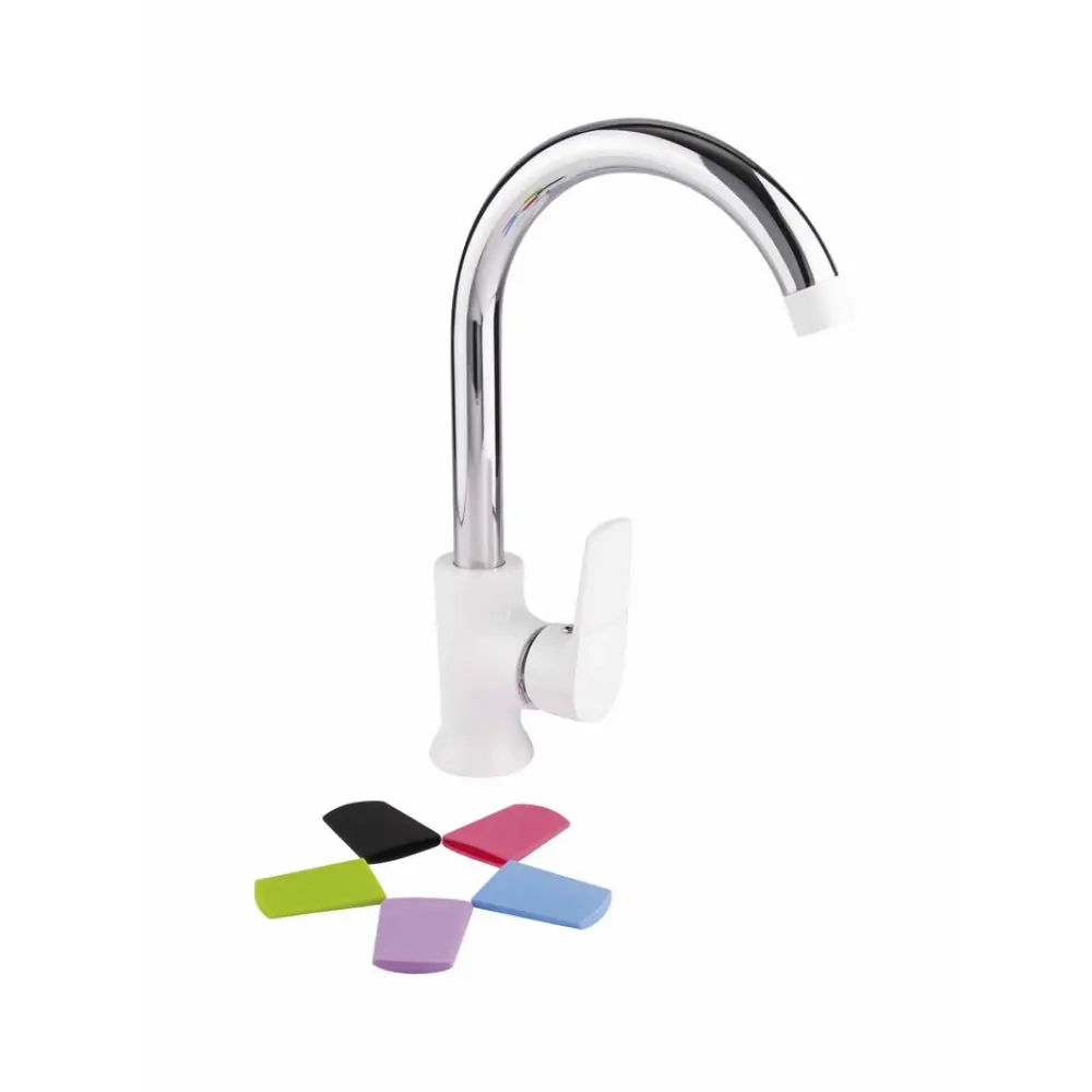 Змішувач для кухні Qtap Polaris WHI 007F виготовлений з високоякісної харчової латуні, яка стійка до впливу корозії, ударів і появи тріщин. Глянсове хромоване покриття не тільки підвищує довговічність змішувача, а й надає йому привабливості. Змішувач має одноважільне управління, за допомогою якого можна відрегулювати температуру і напір холодної та гарячої води. Виконаний в сучасному стилі, корпус змішувача має матову поверхню білого кольору в поєднанні з хромованим виливом.