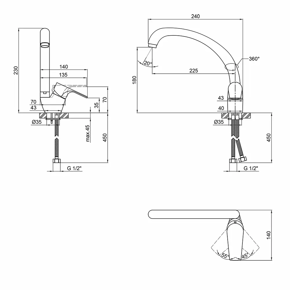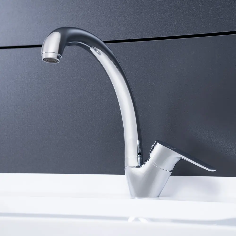 Змішувач для кухні Qtap Uno CRM 008F виготовлений з високоякісної харчової латуні, яка стійка до впливу корозії, ударів і появи тріщин. Глянсове хромоване покриття не тільки підвищує довговічність змішувача, а й надає йому привабливості. Змішувач має одноважільне управління, за допомогою якого можна відрегулювати температуру і напір холодної та гарячої води. Виконаний в сучасному дизайні, який ідеально доповнить інтер‘єр кухні.