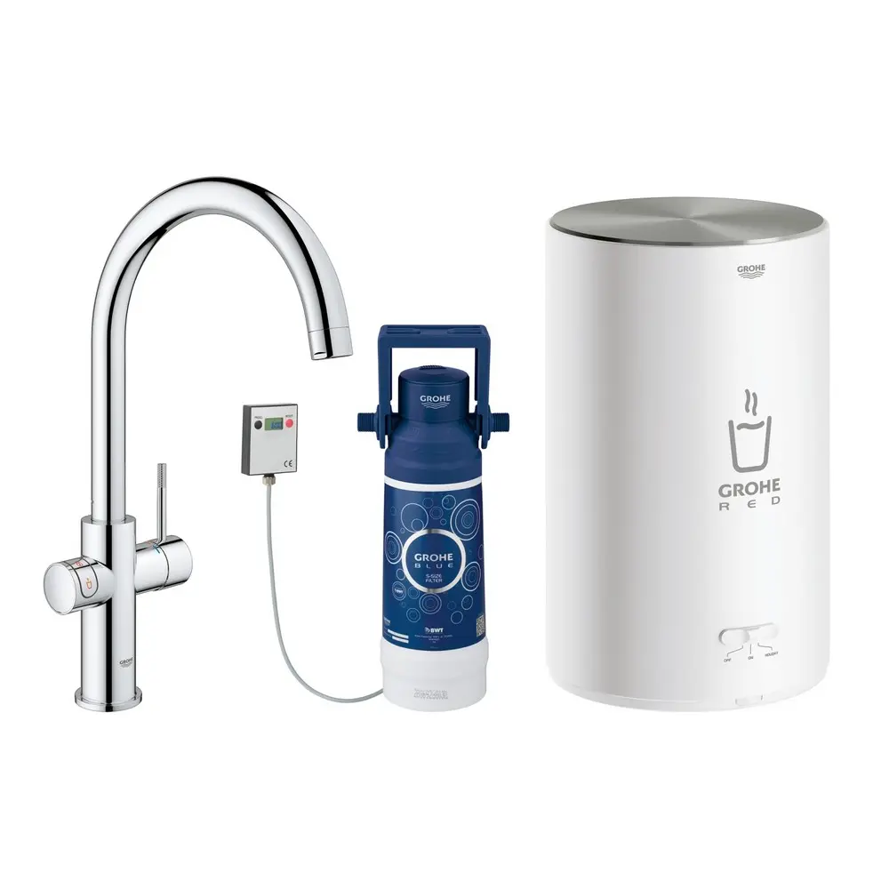 Змішувач для кухні с бойлером Grohe Red Duo 30083001 M-size виготовлений з латуні, має хромоване покриття, комплектується з бойлером і лічильником. Ідеально доповнить інтер‘єр вашої кухні.