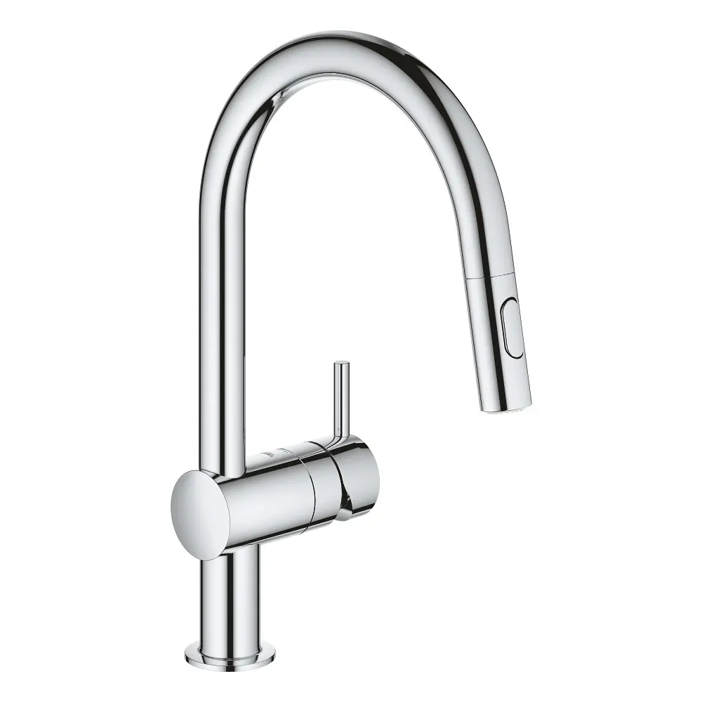 Змішувач висувний для кухні Grohe Minta 30348001 виготовлений з латуні. Має високий висувний поворотний вилив радіусом повороту 360°. За допомогою системи швидкого монтажу, змішувач легко встановити. Виконаний в сучасному стилі та відмінно доповнить інтер‘єр кухні.