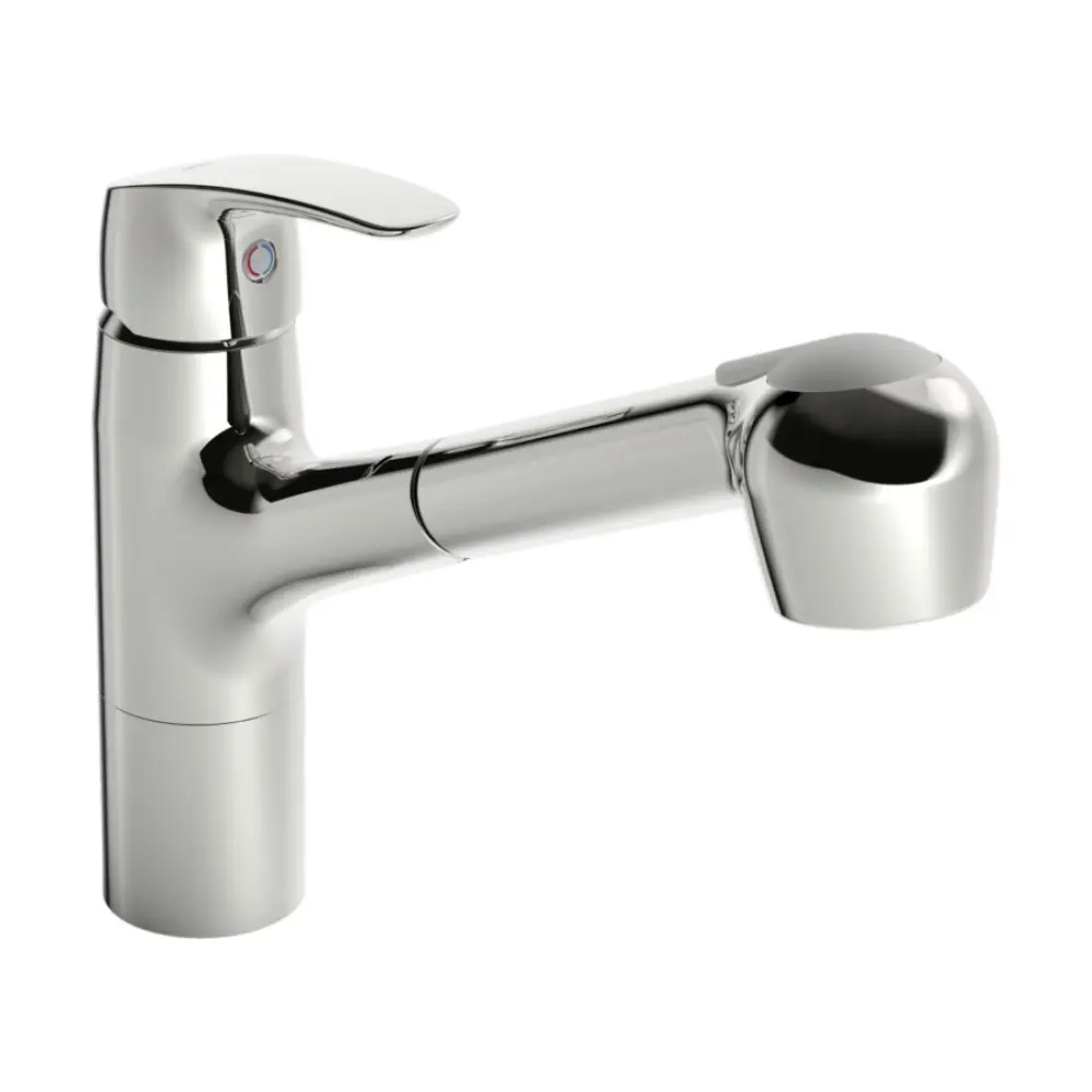 Змішувач висувний для кухні Oras Safira 1032F виготовлений з високоякісної латуні, яка не підпадає впливу корозії, стійка до ударів і появі тріщин. Змішувач з висувним виливом. Поворотний вилив з висувною лійкою-душем та аератором. Довжину висунення витоку можна зафіксувати. Кут повороту виливу встановлено на заводі на 120° (можлива установка обмеження до 40°-80°). Є також варіанти з вбудованим обмежувачем температури води і максимальної витрати.
