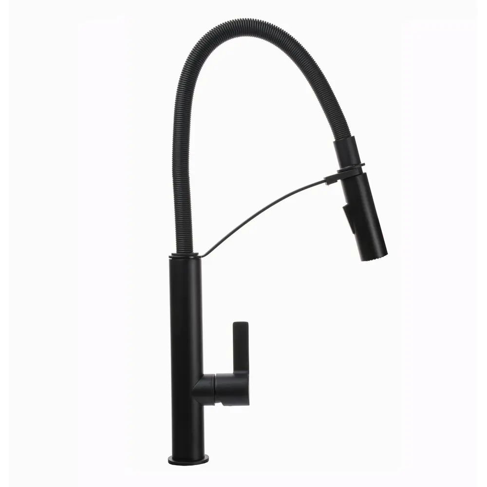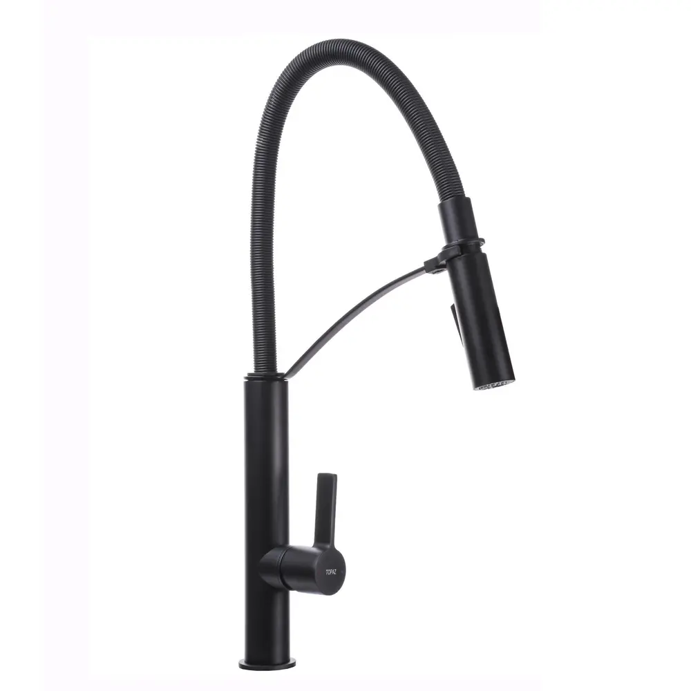 Кухонний змішувач TOPAZ SARDINIA TS 8818-BL чорний гофро-гусак метал, лійка-душ
