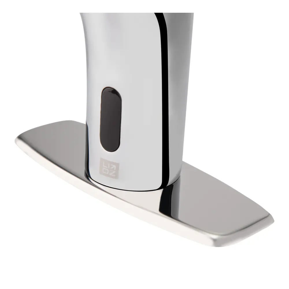 Змішувач безконтактний для раковини Lidz (CRM) 90 00 078 00 виготовлений з цинку. Глянцева хромована поверхня надає не тільки довговічність змішувачу, а й оригінальний зовнішній вигляд. Управління змішувачем відбувається за допомогою датчиків руху. Відстань, за якої вмикається водяний потік, - 20-30 см. Підключення води відбувається через гнучкі шланги з діаметром підключення 1/2", які є в комплекті поставки. Виконаний в сучасному дизайні і зручний у використанні.