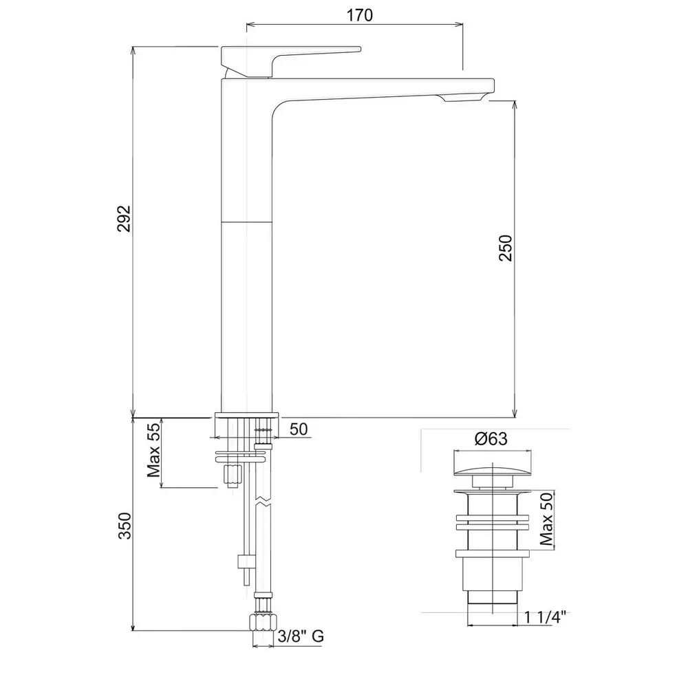 Змішувач, Гнучкий підвід, Донний клапан, Кріпильні деталі