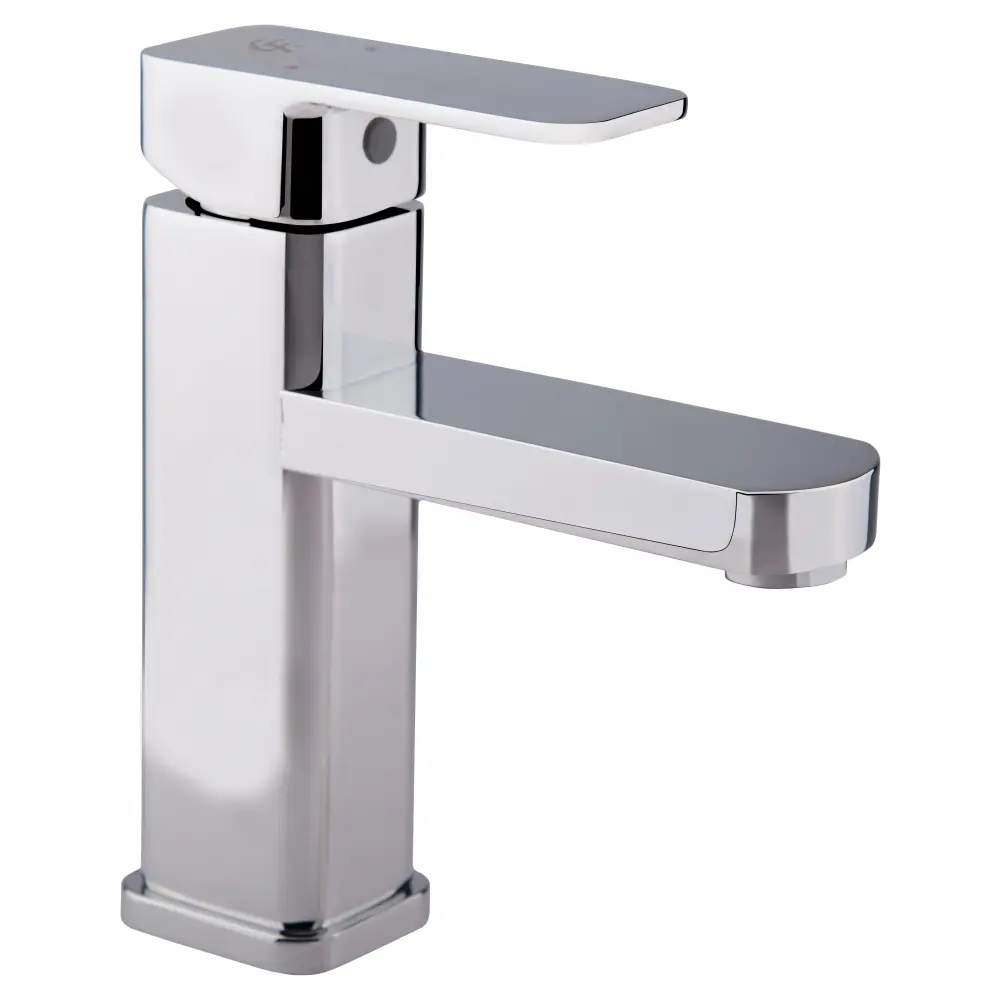 Змішувач для раковини GF (CRM)S-10-001F виготовлений з силуміну. Глянцева хромована поверхня надає змішувачу оригінального зовнішнього вигляду. Інтенсивність водного потоку та температура регулюються за допомогою переміщення важеля. Підключення води відбувається через гнучкі шланги з діаметром підмикання 1/2", які є в комплекті.