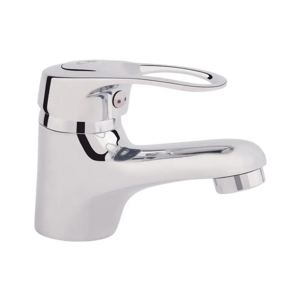 Змішувач для раковини GF (CRM)S-13-001 виготовлений з силуміну. Глянцева хромована поверхня надає змішувачу оригінального зовнішнього вигляду. Інтенсивність водного потоку та температура регулюються за допомогою переміщення важеля. Підключення води відбувається через гнучкі шланги з діаметром підмикання 1/2", які є в комплекті.