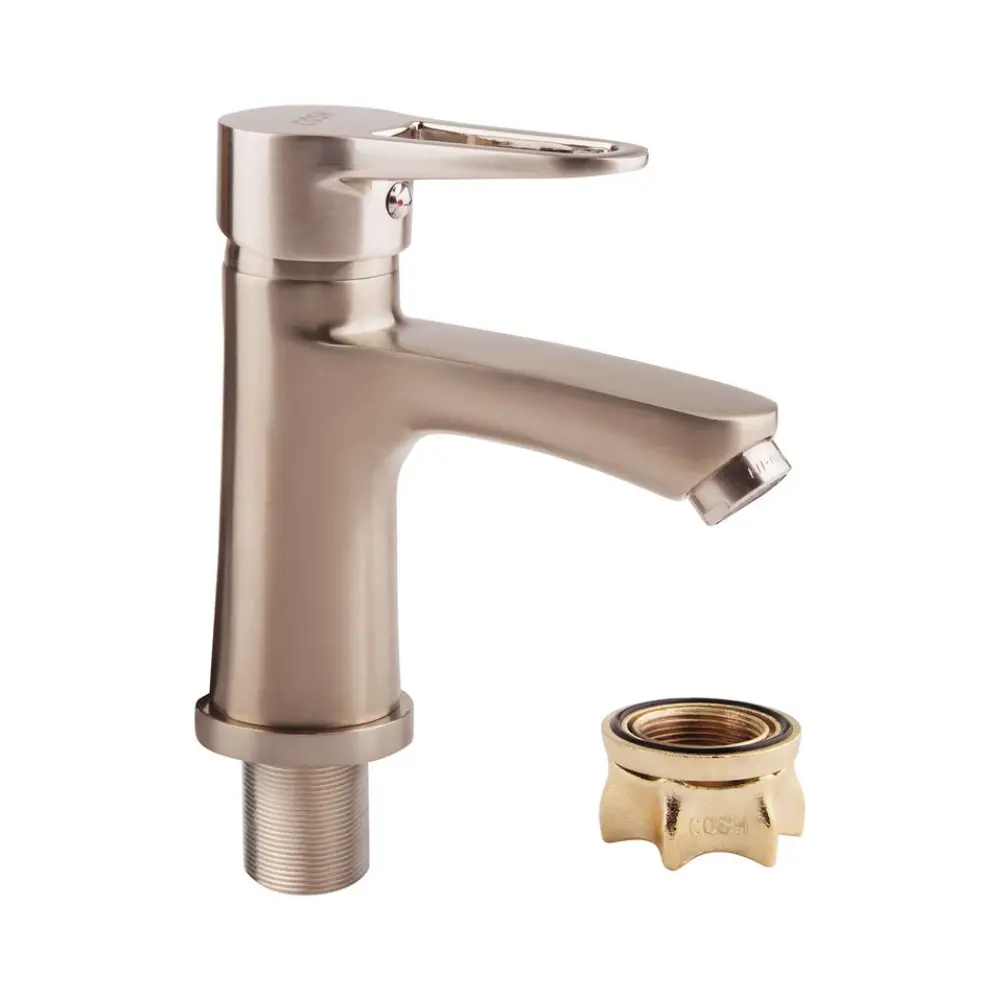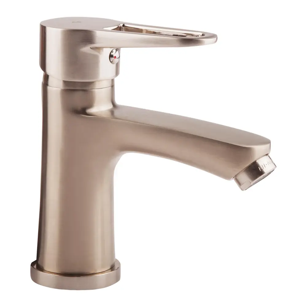 Змішувач для раковини GF (NKS)S-02-001F виготовлений з силуміну. Нікельована брашована поверхня надає змішувачу оригінального зовнішнішнього вигляду. Інтенсивність водного потоку та температура регулюються за допомогою переміщення важеля. Підключення води відбувається через гнучкі шланги з діаметром підмикання 1/2", які є в комплекті.