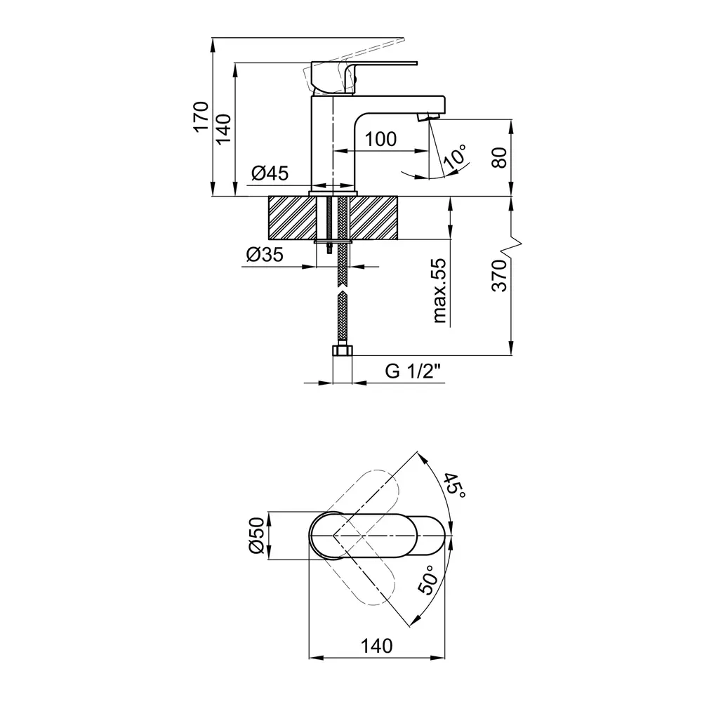 Змішувач для раковини Lidz (CRM) 24 49 001 виготовлений з цинку в хромованому кольорі з глянсовою блискучою поверхнею. Завдяки вище перерахованим характеристикам, він довговічний і зазнає менше впливу корозії, ніж змішувачі з гіршим матеріалом виготовлення. Виріб кріпиться урізним способом за допомогою гнучкого підведення і кріплень, які комплектуються разом з ним в одне вантажне місце. Подача води регулюється важелем.