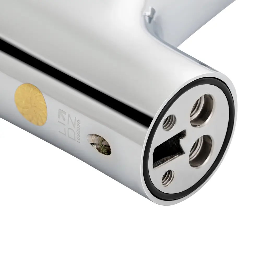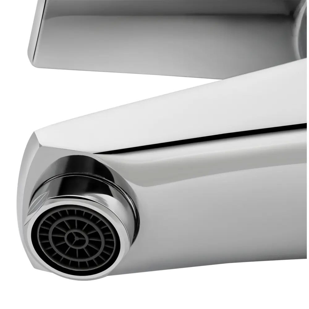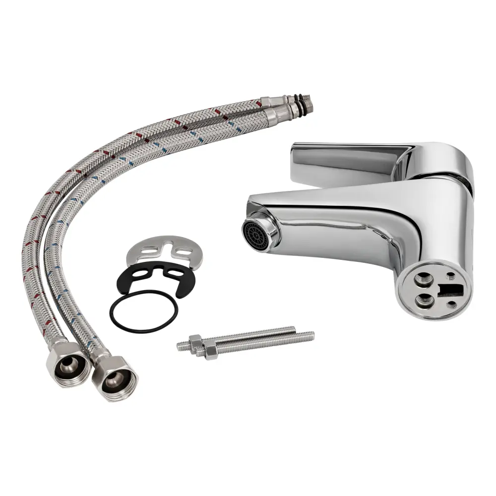 Змішувач для раковини Lidz (CRM) 40 87 001 1 виконаний в хромованому кольорі з глянсовою поверхнею з коротким фіксованим виливом. Він монтується в отвір для змішувача на пристінному бортику умивальника. Напір води і її температура регулюються поворотом важеля з нанесеним маркуванням Х + Г води в необхідне положення.