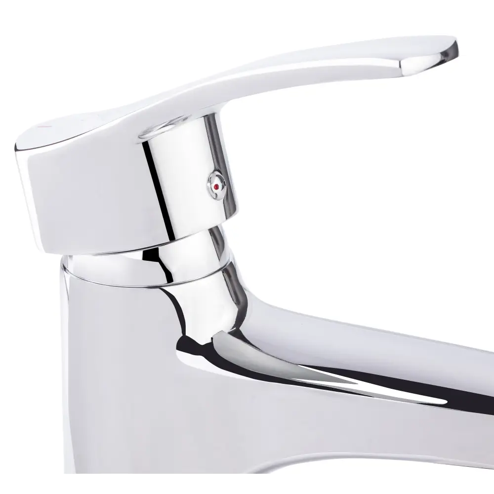 Змішувач для раковини Lidz (CRM) 41 86 001F виготовлено з цинку. Глянцева хромована поверхня надає змішувачу не тільки довговічність, а й привабливий зовнішній вигляд. Він монтується в отвір для змішувача на пристінному бортику умивальника або на стільниці. Напір і температура води регулюються поворотом важеля. Підключення води відбувається через гнучкі шланги, які входять в комплект поставки. Змішувач виконано в сучасному стилі, він зручний у використанні.