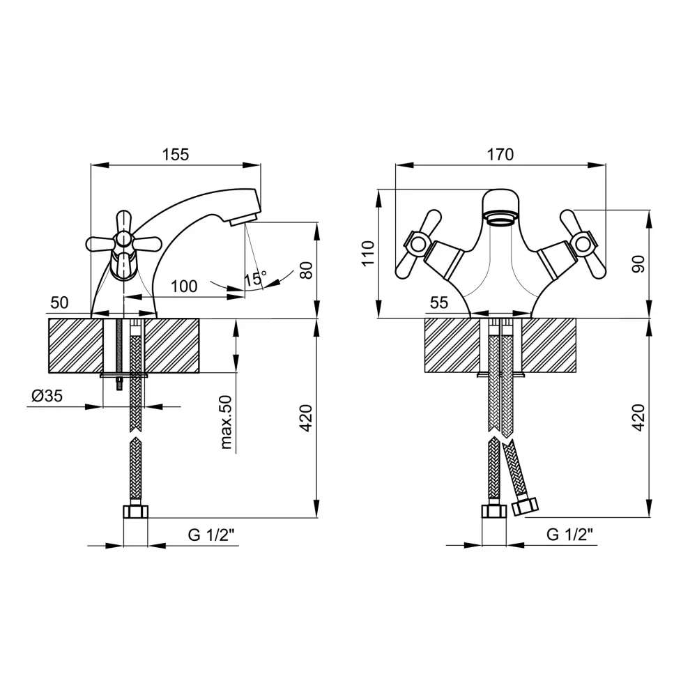 Змішувач, Гнучкий підвід, Кріплення