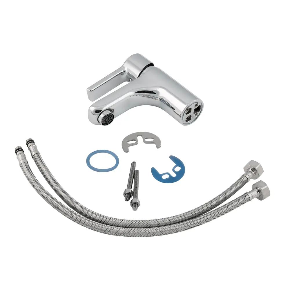 Змішувач для раковини Lidz (CRM) J-Lex 40 001 виготовлений з латуні. Глянцева хромована поверхня надає змішувачу не тільки довговічність, а й привабливий зовнішній вигляд. Він монтується в отвір для змішувача на пристінному бортику умивальника або на стільниці. Напір і температура води регулюються поворотом важеля. Підключення води відбувається через гнучкі шланги, які входять в комплект поставки. Змішувач виконано в сучасному стилі, він зручний у використанні.