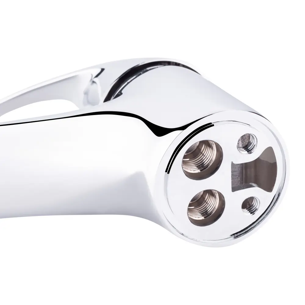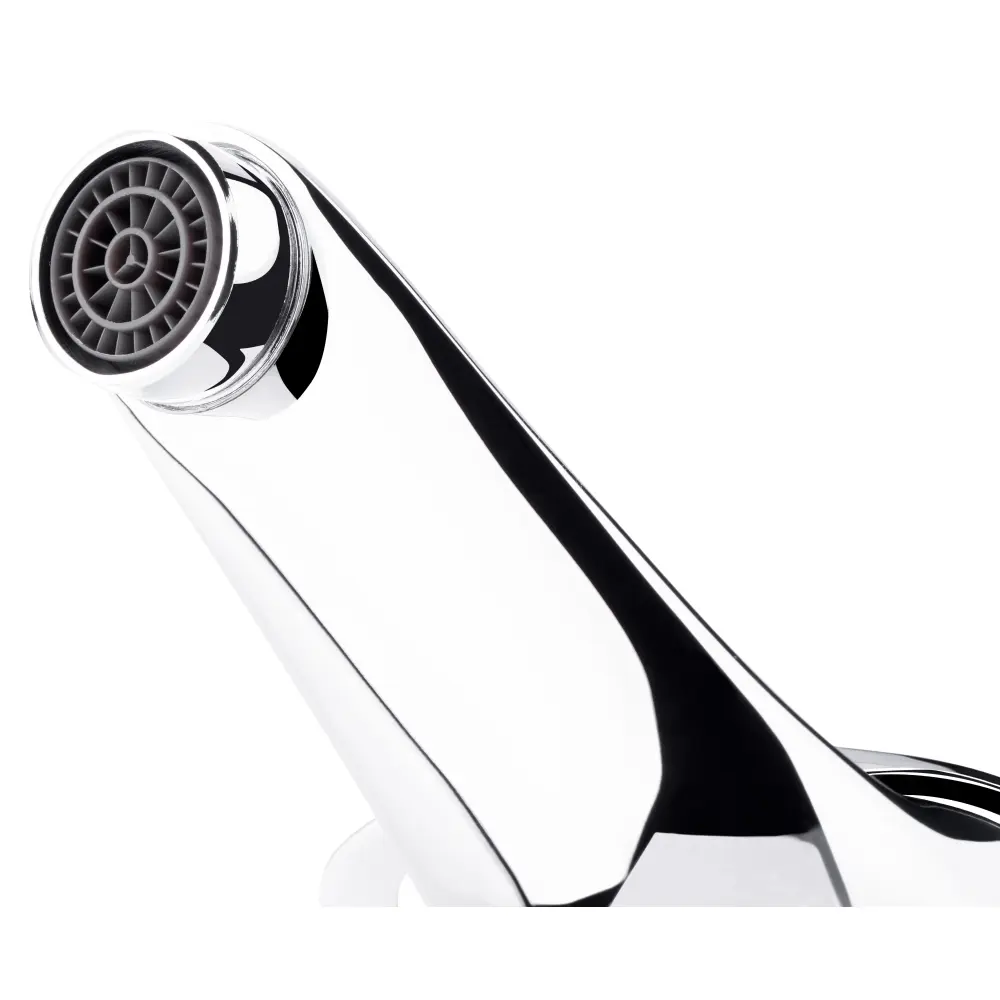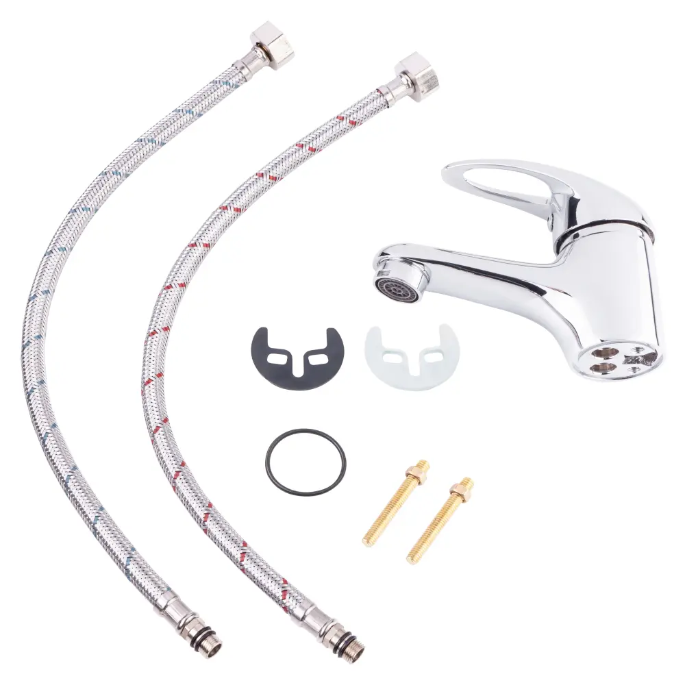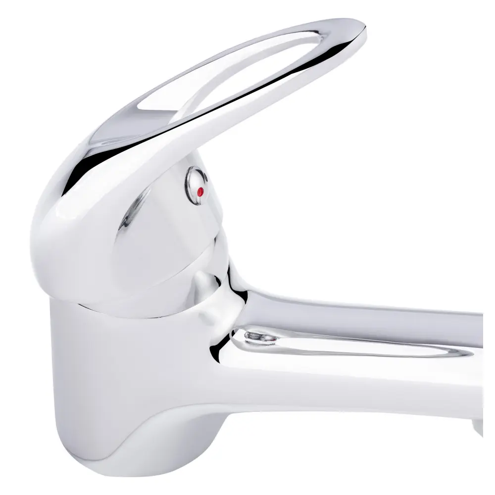 Змішувач для раковини Lidz (CRM) Premiera 41 001 виготовлений з латуні. Глянцева хромована поверхня надає змішувачу не тільки довговічність, а й привабливий зовнішній вигляд. Він монтується в отвір для змішувача на пристінному бортику умивальника або на стільниці. Напір і температура води регулюються поворотом важеля. Підключення води відбувається через гнучкі шланги, які входять в комплект поставки. Змішувач виконано в сучасному стилі, він зручний у використанні.
