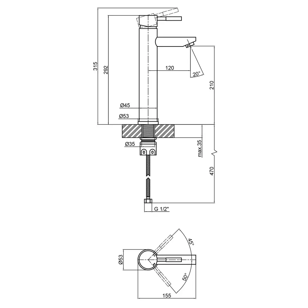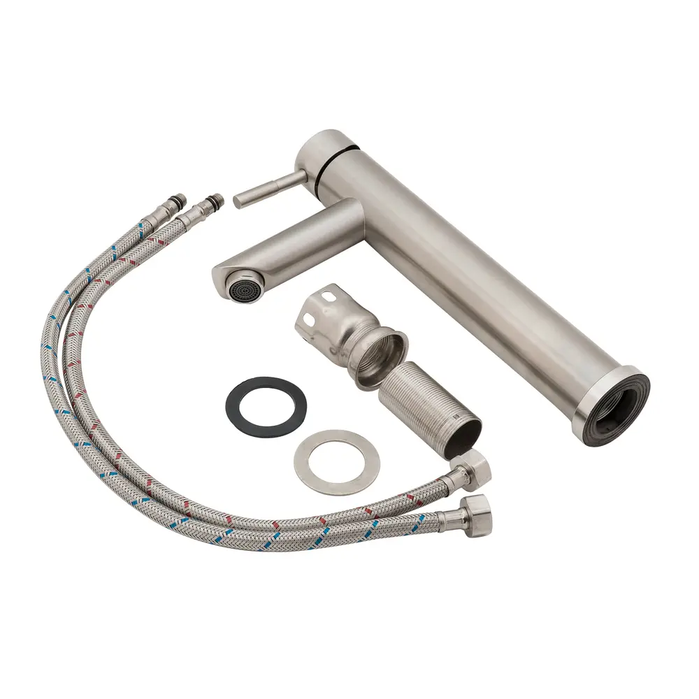 Змішувач для раковини Lidz (NKS) 12 32 001F-1 виготовлена з нержавіючої сталі, яка стійка до впливу корозії, ударів і тріщин. Нікельована брашована поверхня надає змішувачу не тільки довговічність, але й оригінальний зовнішній вигляд. Інтенсивність водного потоку та температура регулюються за допомогою переміщення важеля. Підключення води відбувається через гнучкі шланги з діаметром підмикання 1/2", які є в комплекті.