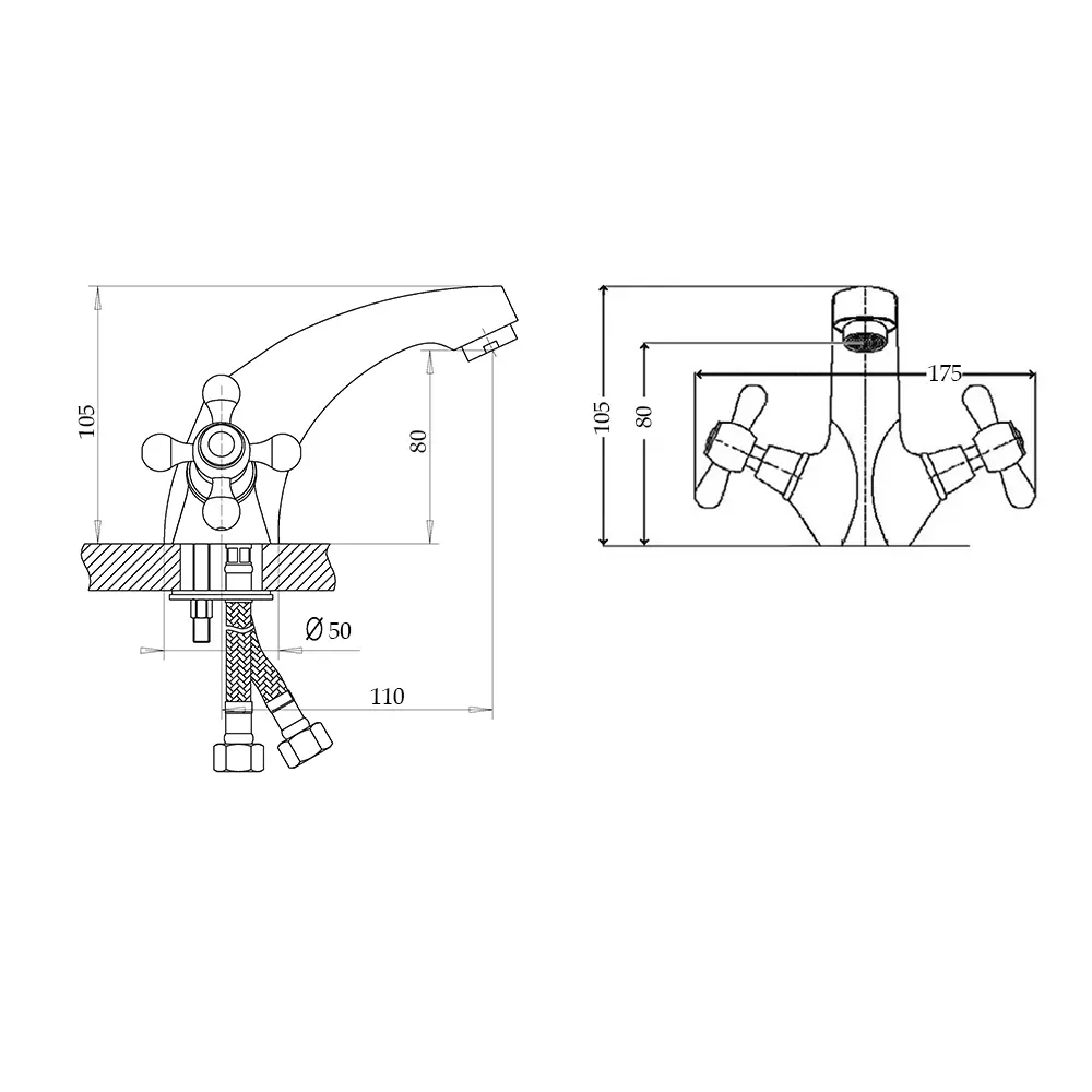 Змішувач для раковини Qtap Dominox CRM 161 виготовлений з високоякісної харчової латуні, яка стійка до впливу корозії, ударів і тріщин. Глянсове хромоване покриття не тільки підвищує довговічність змішувача, а й надає йому оригінальний зовнішній вигляд. Інтенсивність водного потоку та температура регулюються за допомогою переміщення двох вентилів. Підключення води відбувається через гнучкі шланги з діаметром підмикання 1/2". Виконаний в сучасному стилі, який ідеально доповнить інтер‘єр санвузла