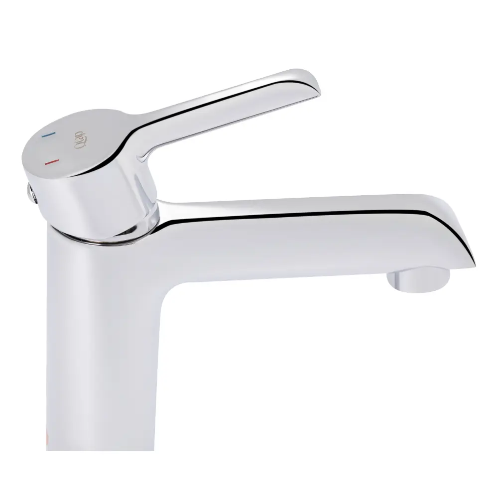 Змішувач для раковини Qtap Grand CRM 001F виготовлено з високоякісної харчової латуні, що стійка до впливу корозії, ударів і тріщин. Глянцеве хромоване покриття не тільки підвищує довговічність змішувача, а й надає йому оригінальний зовнішній вигляд. Інтенсивність водного потоку та температура регулюються за допомогою переміщення важеля. Підключення води відбувається через гнучкі шланги з діаметром підключення 1/2".