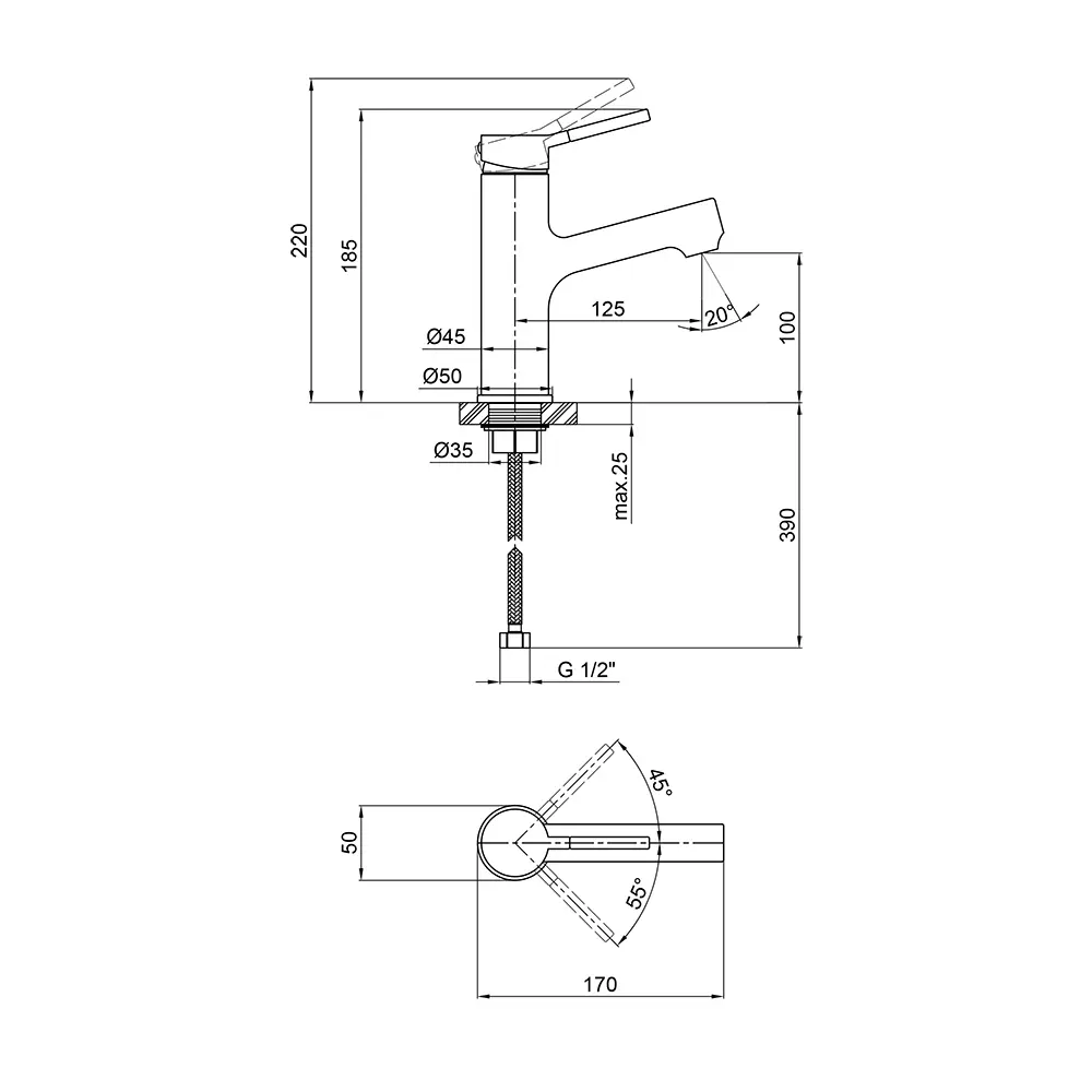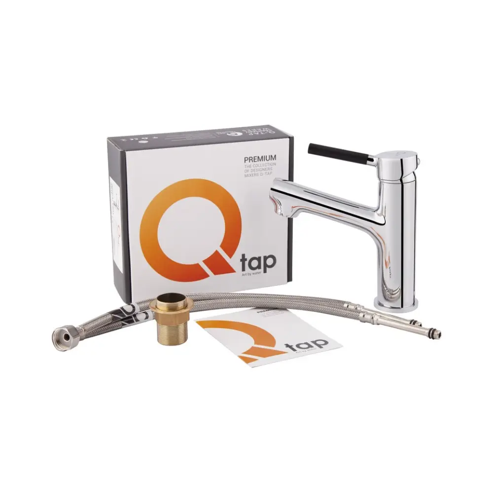 Змішувач для раковини Qtap Inspai CRM 001F виготовлений з високоякісної харчової латуні, яка стійка до впливу корозії, ударів і тріщин. Глянсове хромоване покриття не тільки підвищує довговічність змішувача, а й надає йому оригінальний зовнішній вигляд. Інтенсивність водного потоку та температура регулюються за допомогою переміщення важеля. Підключення води відбувається через гнучкі шланги з діаметром підмикання 1/2". Виконаний в сучасному стилі, який ідеально доповнить інтер‘єр санвузла.