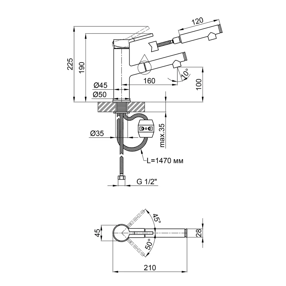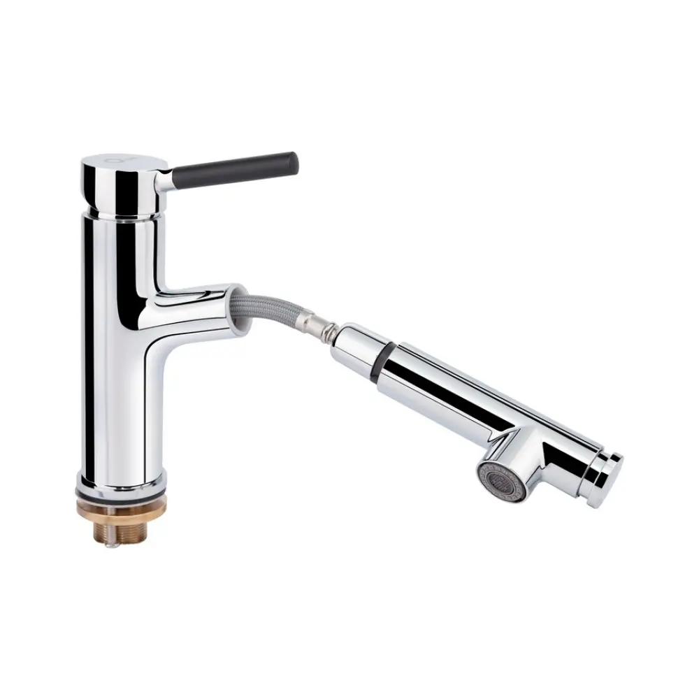 Змішувач висувний для раковини Qtap Inspai CRM 011F виготовлений з високоякісної харчової латуні, яка стійка до впливу корозії, ударів і тріщин. Глянсове хромоване покриття не тільки підвищує довговічність змішувача, а й надає йому оригінальний зовнішній вигляд. Інтенсивність водного потоку та температура регулюються за допомогою переміщення важеля. Підключення води відбувається через гнучкі шланги з діаметром підмикання 1/2". Відмінною рисою є висувний вилив, що дозволяє збільшити радіус.