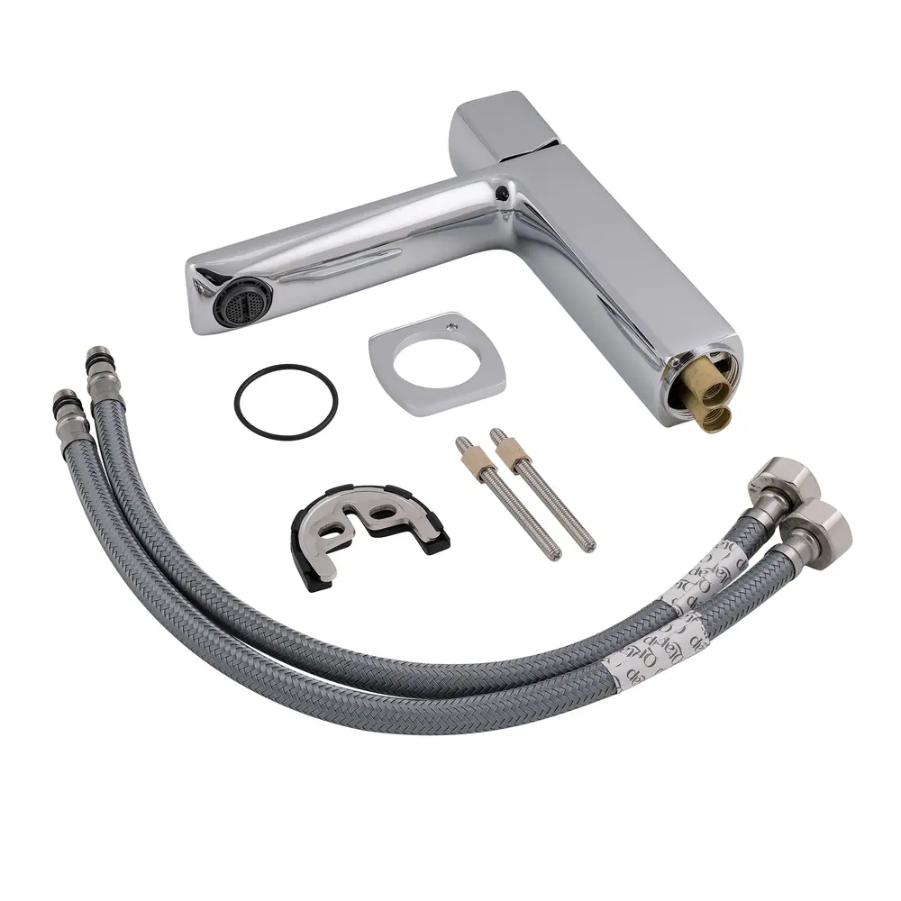 Змішувач для раковини Qtap Krychle 1852104C виготовлено з високоякісної харчової латуні, яка стійка до впливу корозії, ударів і тріщин. Глянцеве хромоване покриття не тільки підвищує довговічність змішувача, а й надає йому оригінальний зовнішній вигляд. Інтенсивність водного потоку та температура регулюються за допомогою переміщення важеля. Підключення води відбувається через гнучкі шланги з діаметром підмикання 1/2". Змішувач виконано в сучасному стилі.