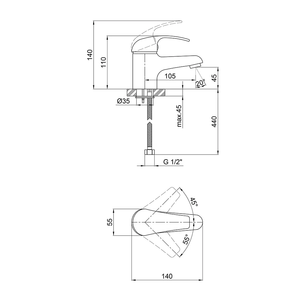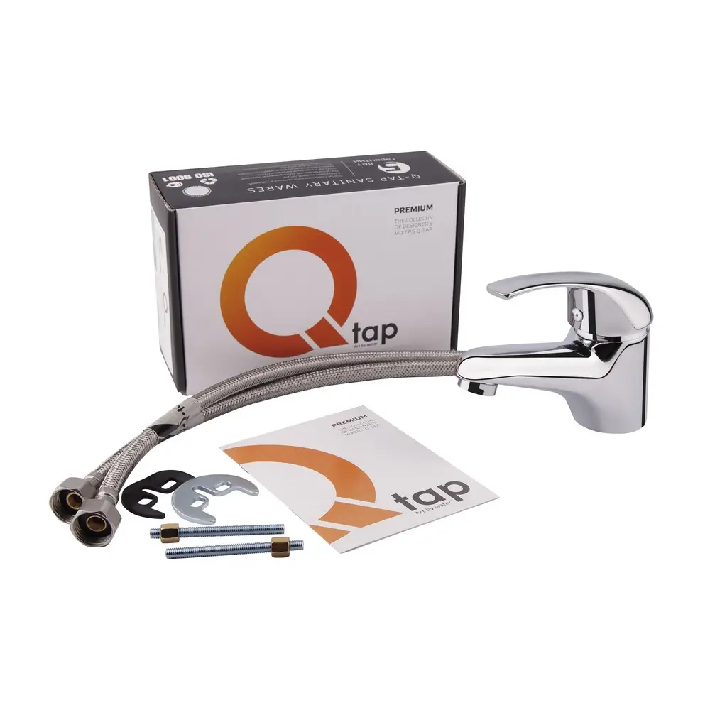 Змішувач для раковини Qtap Premiere CRM 001 виготовлений з високоякісної харчової латуні, яка стійка до впливу корозії, ударів і тріщин. Глянсове хромоване покриття не тільки підвищує довговічність змішувача, а й надає йому оригінальний зовнішній вигляд. Інтенсивність водного потоку та температура регулюються за допомогою переміщення важеля. Підключення води відбувається через гнучкі шланги з діаметром підмикання 1/2". Виконаний в сучасному стилі, який ідеально доповнить інтер‘єр санвузла.