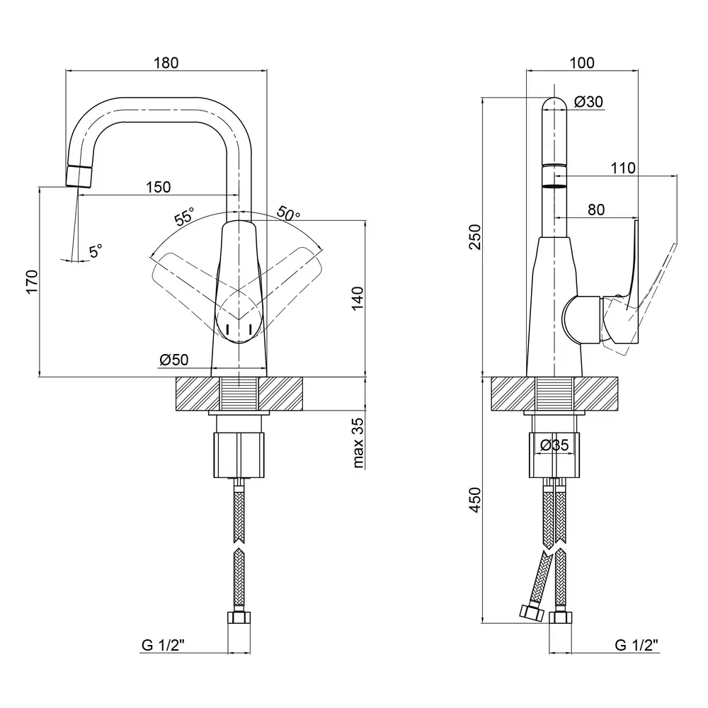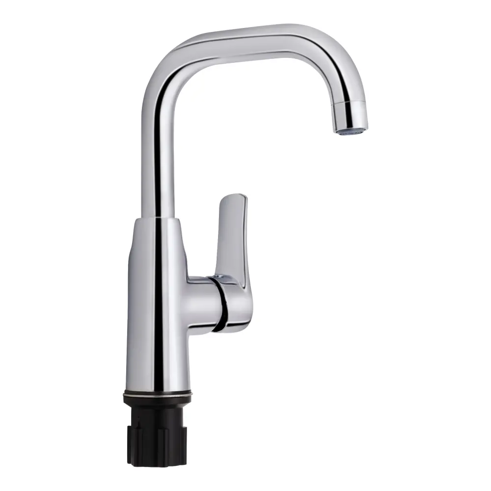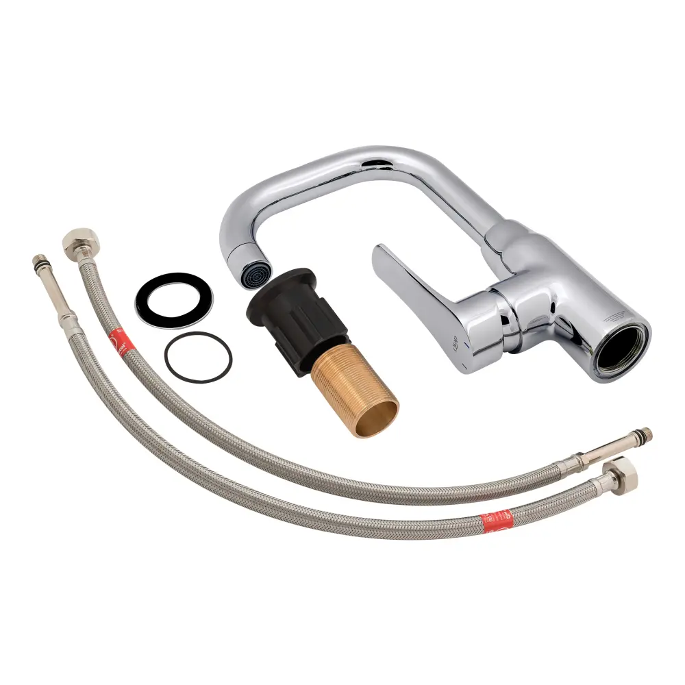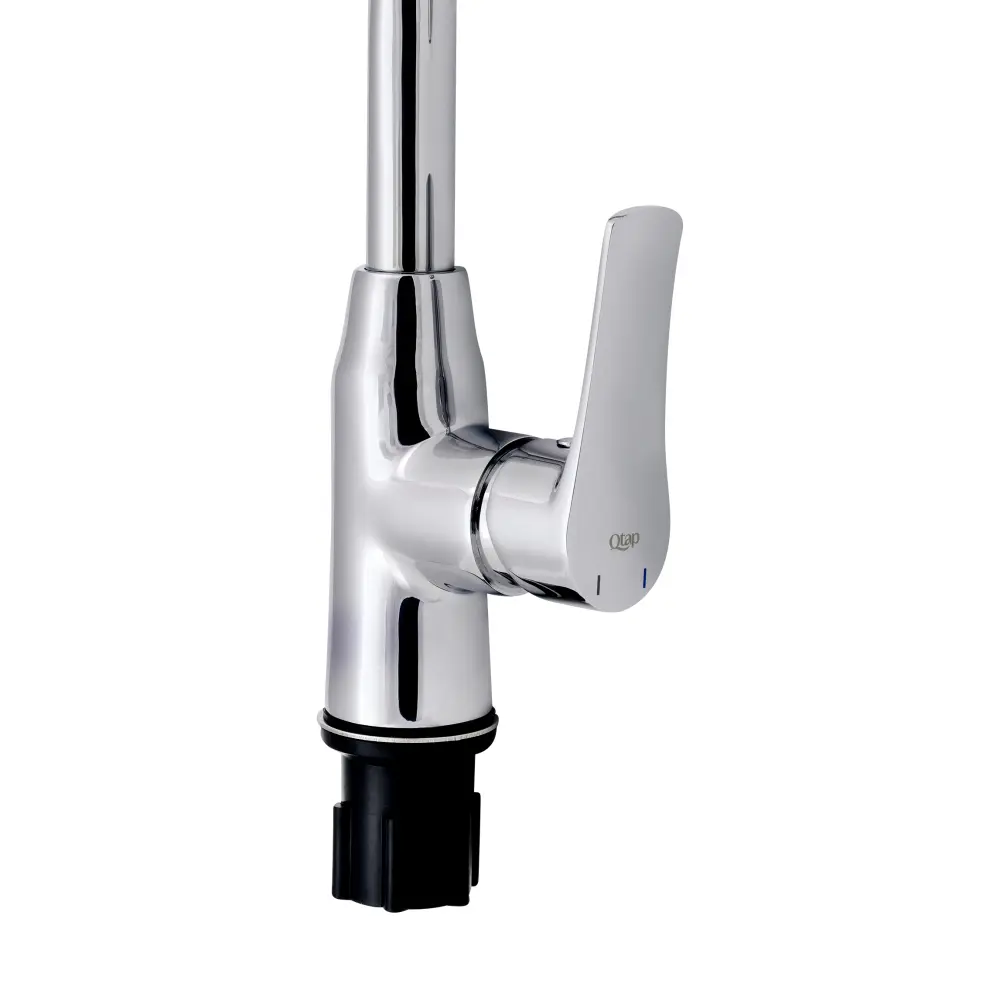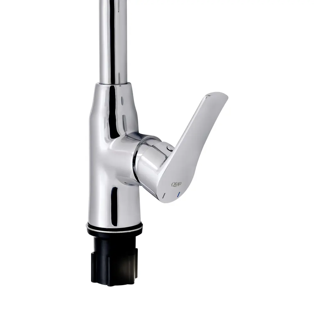Змішувач для раковини Qtap Terezin 9024101FC виготовлено з високоякісної харчової латуні, що не схильна до корозії, стійка до ударів і появи тріщин. Глянцеве хромоване покриття не тільки підвищує довговічність змішувача, а й надає йому оригінальний зовнішній вигляд. Інтенсивність водного потоку і температура регулюються за допомогою переміщення важеля. Підключення води здійснюється через гнучкі шланги з діаметром підключення 1/2". Виконано в сучасному стилі.