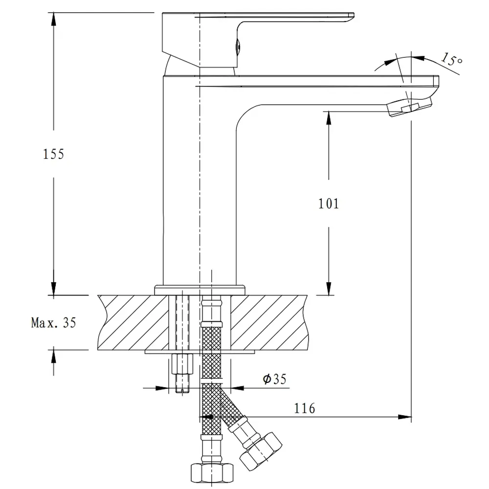Аератор Neoperl, гнучка підводка з нержавіючої сталі (450 мм, 1/2"), кріпильна шпилька, гумові прокладки