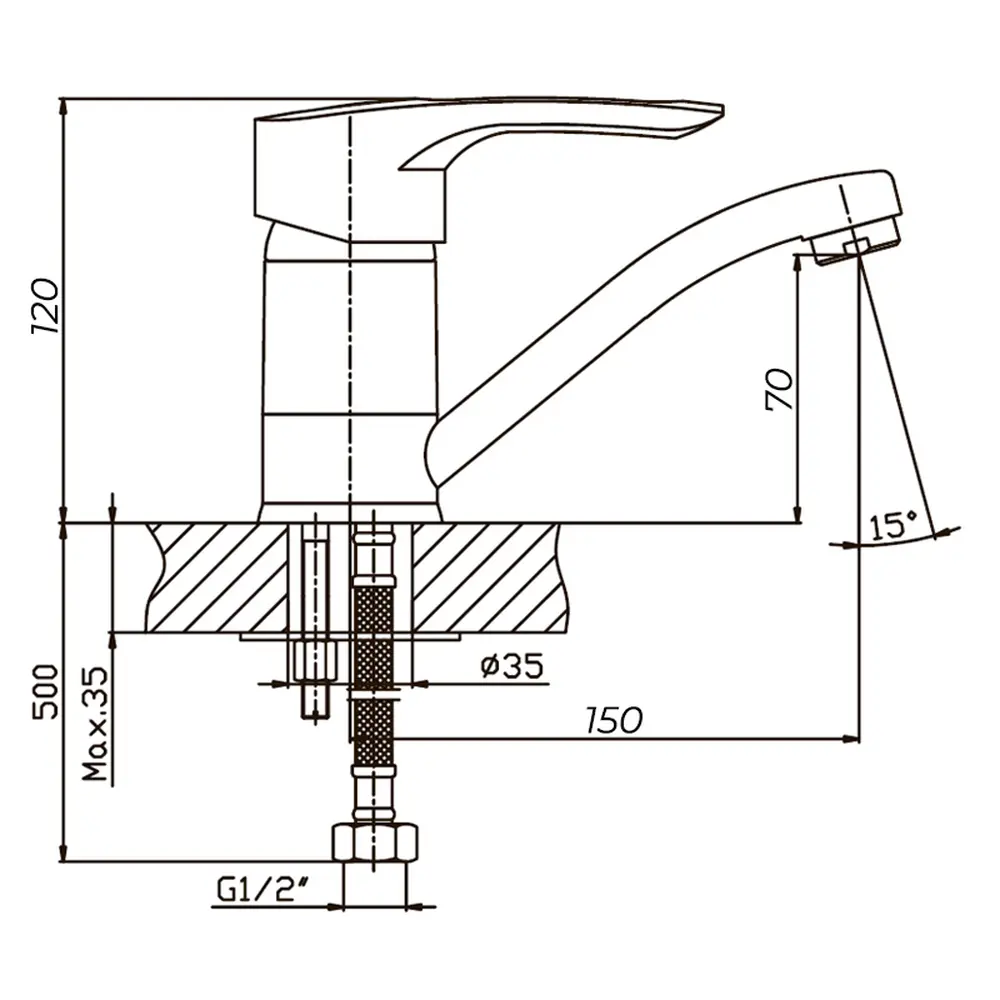 Аератор Neoperl, гнучка підводка з нержавіючої сталі (450 мм, 1/2"), кріпильна шпилька, гумові прокладки