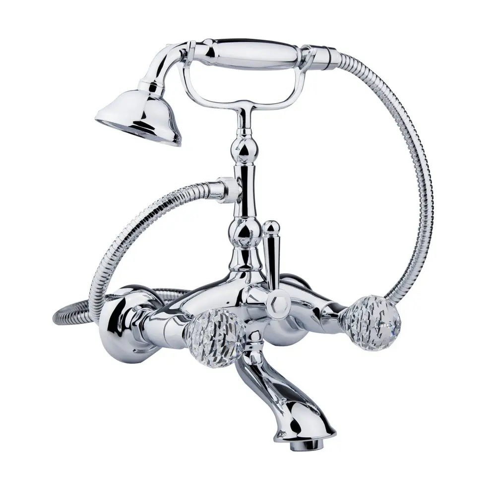 Змішувач для ванни Bianchi Boheme VSCBOM102300CRM виготовлений з міцної якісної латуні, стійкої до корозії. Завдяки рівномірному хромованому покриттю, яке забезпечує захист від механічних пошкоджень і полегшує догляд за виробом, експлуатаційний період значно збільшується. Виріб має істотну деталь: вентилі виготовлені з каменів Swarovski. Також змішувач обладнаний душовим гарнітуром зі зручною лійкою та вбудованим стильним тримачем.