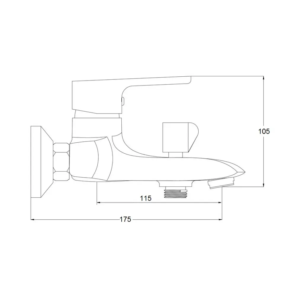 Змішувач для ванни GF (CRM)/S-21- 1402 з фіксованим виливом виготовлений з силуміну, укомплектований кронштейном для ручного душу, душовим шлангом і лійкою. Для вмикання потоку води передбачено важіль з нанесеними маркуванням Х+Г води та фірмовим логотипом виробника, для перемикання на душ - поворотний дивертор. Настінний монтаж здійснюється за допомогою кріпильних деталей, які комплектуються разом зі змішувачем. Круглі розетки приховають сліди установки на обробці.