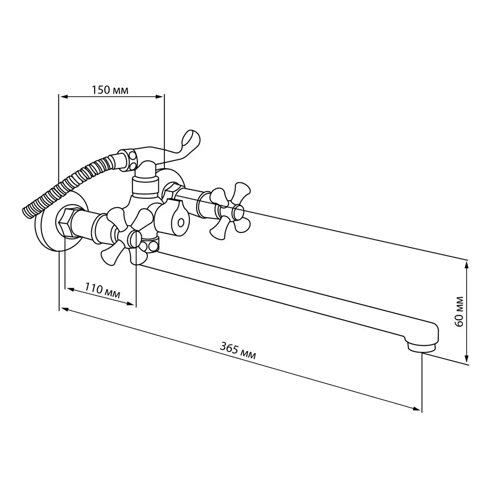 Змішувач, Душовий шланг, Лійка для ручного душу, Кріпильні деталі