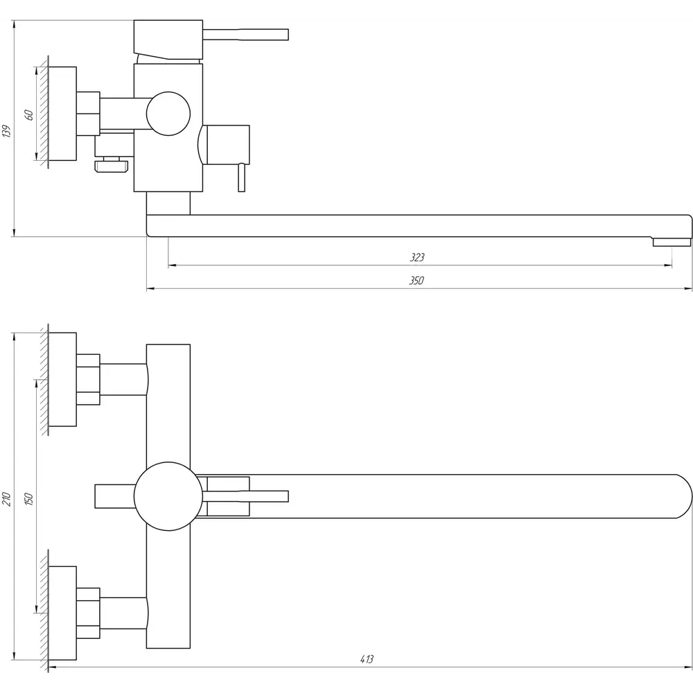 Змішувач для ванни Globus Lux ALPEN SBT1-208-ВВ, SUS304, Чорний матовий