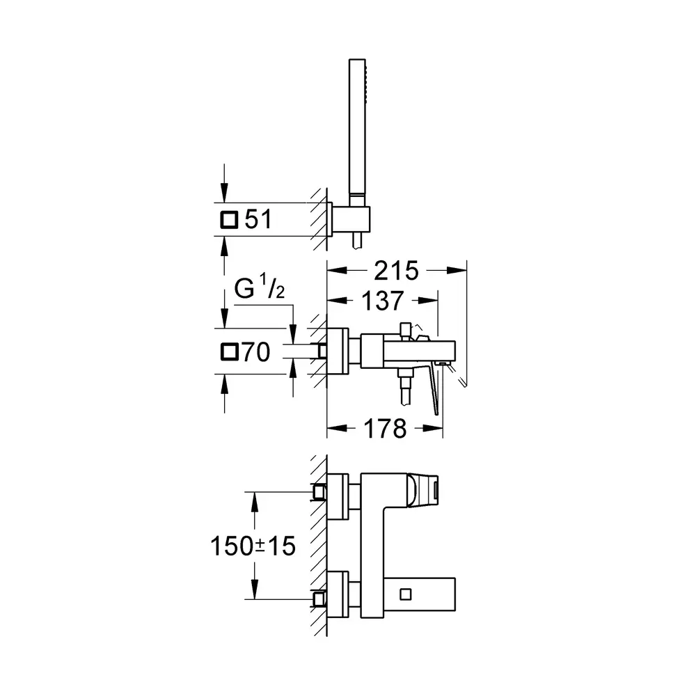 Металевий важіль. Регулювання витрати води. Автоматичний перемикач: ванна/душ. Вбудований зворотний клапан у душовому виході 1/2. Сховані S-подібні з'єднання, захист від зворотного потоку. Додатковий обмежувач температури 46 375 000. Кл
