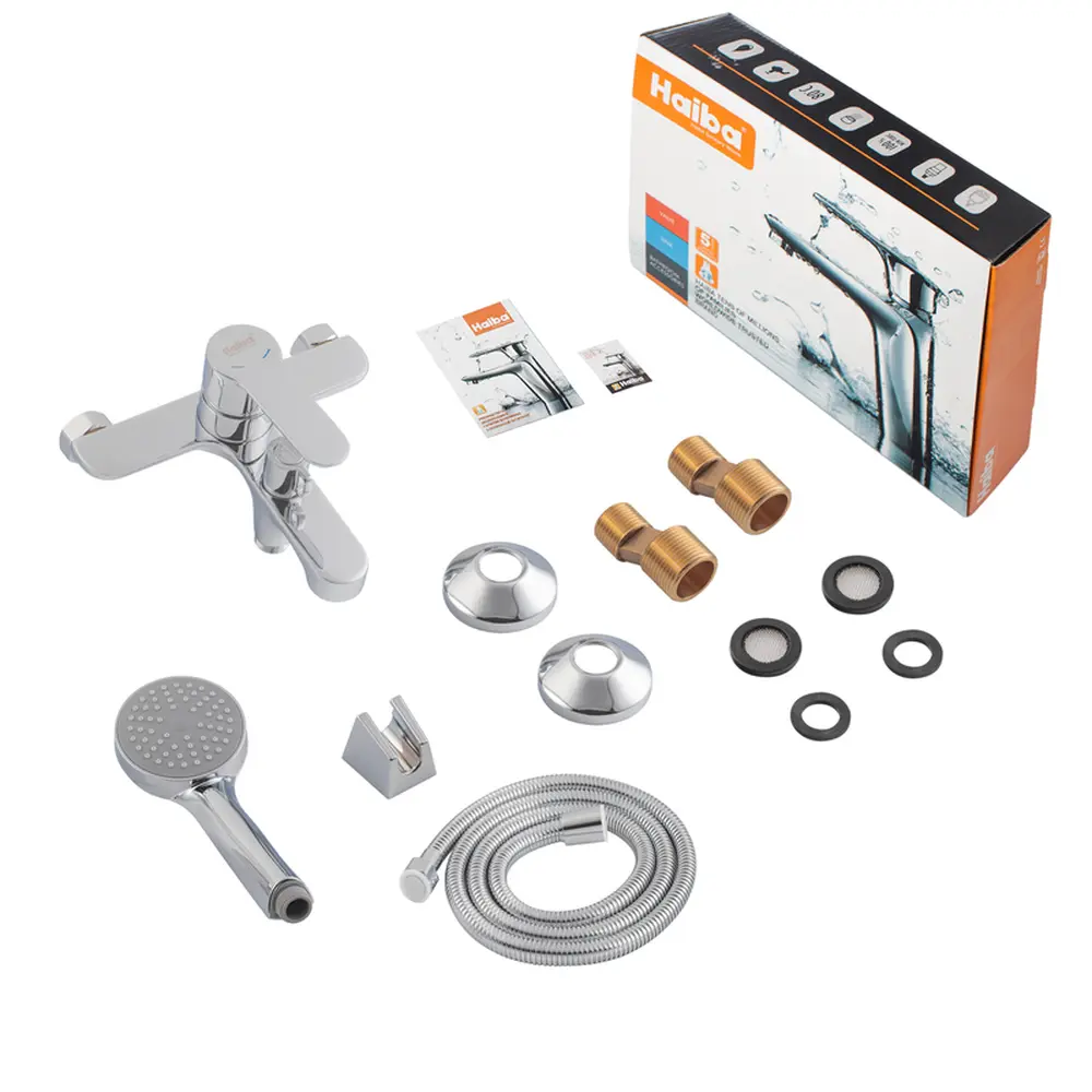 Шланг 150 см, ручна лійка, тримач для лійки, ексцентрики, чашки, гумові прокладки, керівництво по експлуатації та гарантійний талон